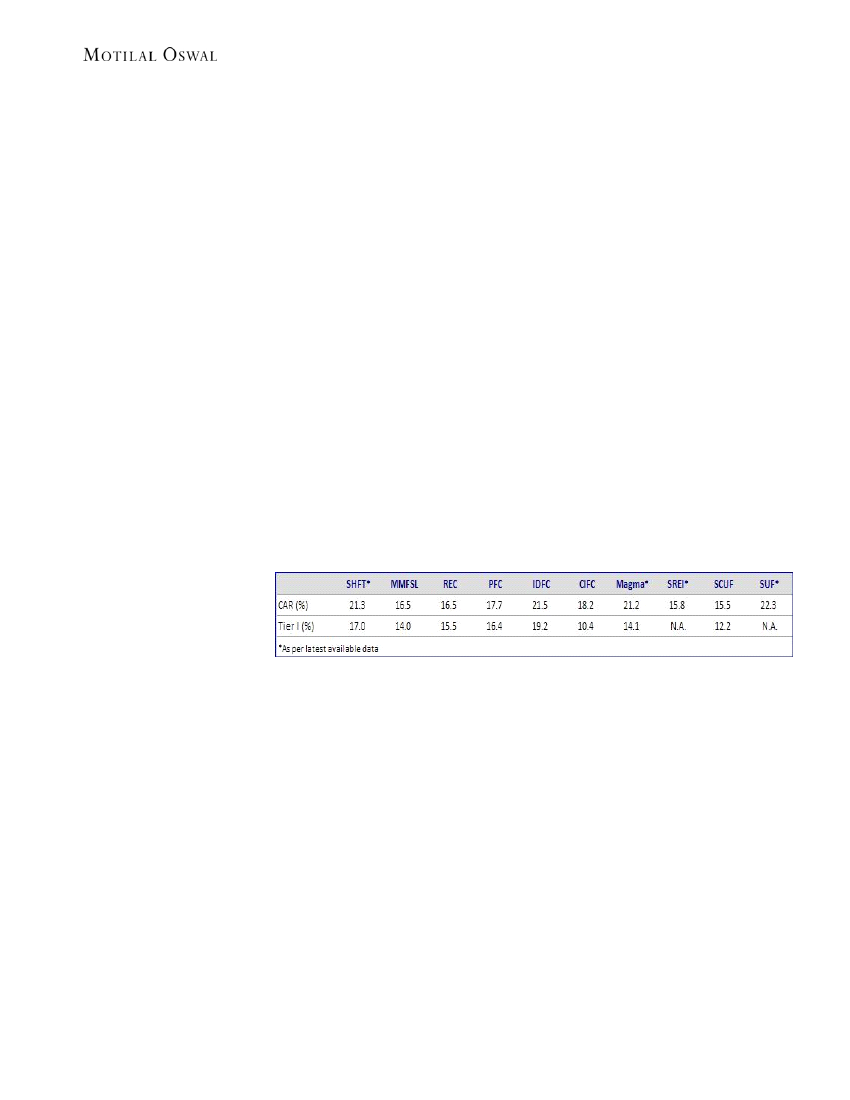 for NBFCs as they work with optimal leverage at 7‐8x (Implied Tier I of 12 %+) to