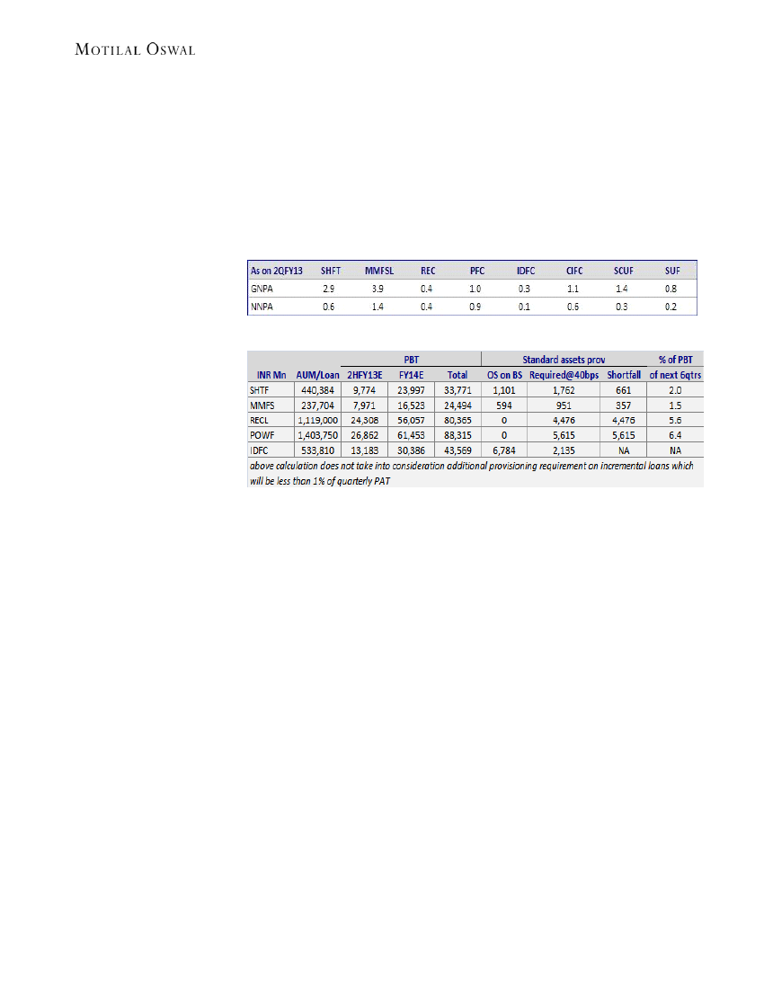 keep credit rating intact. Further, all major NBFCs are currently adequately