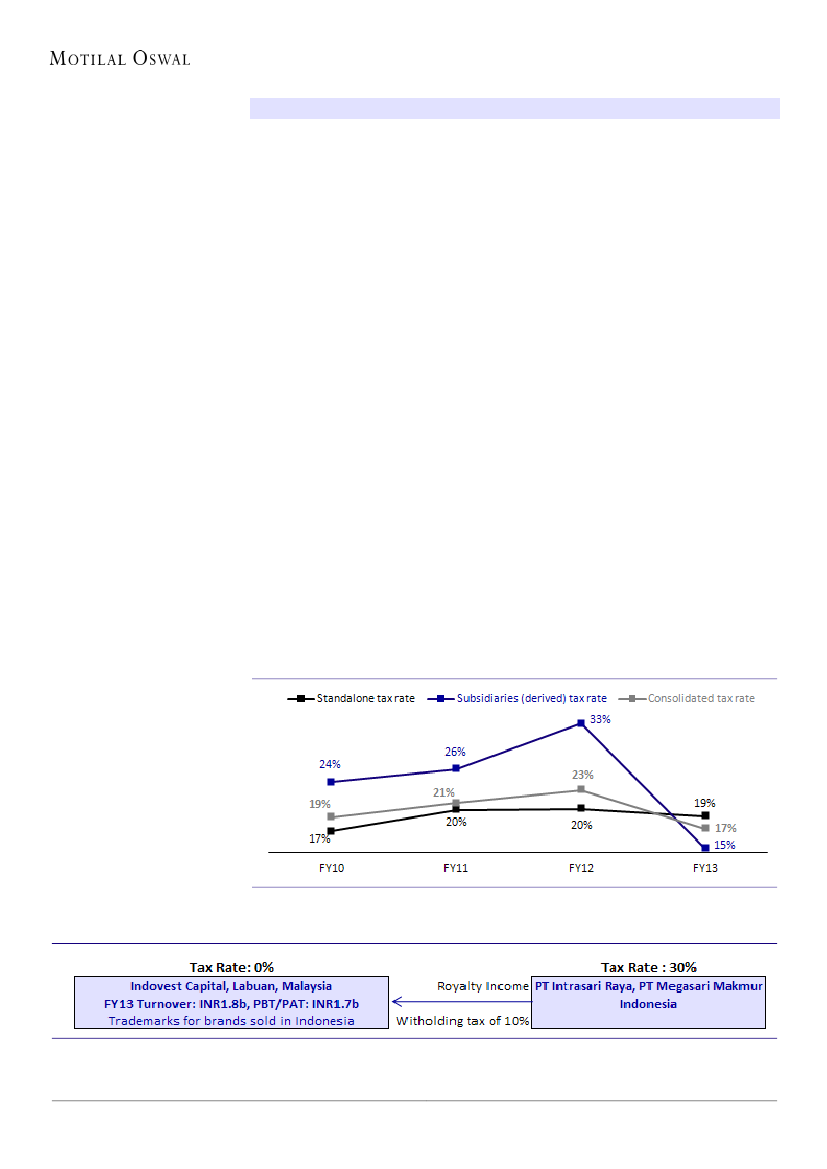 (FY12: 33%). Subsidiaries tax rate declined due to tax savings on