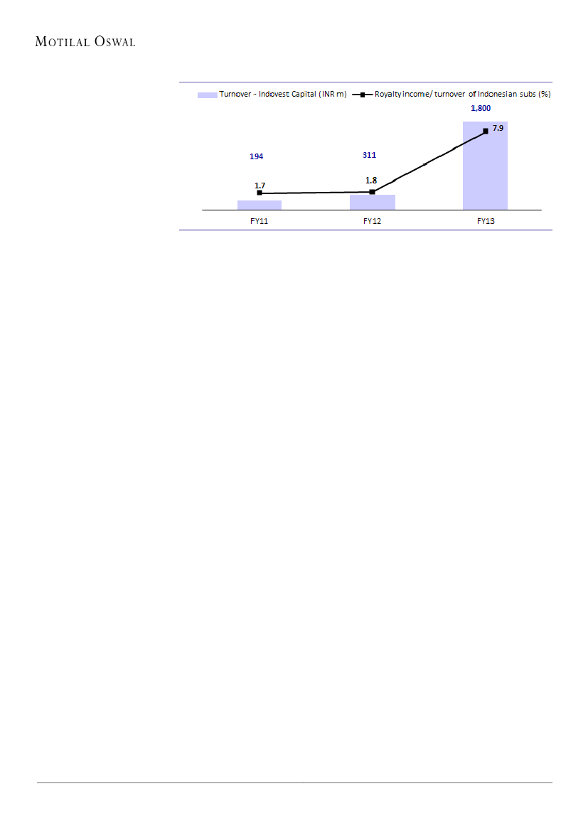 royalty income on products sold in Indonesia increasing from