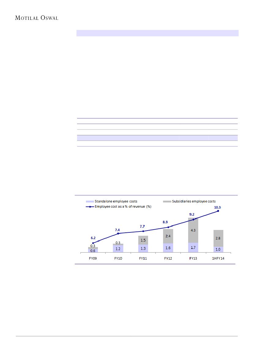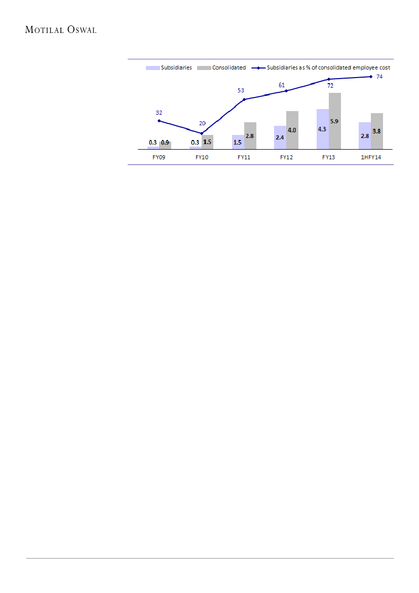 due to acquisitions outside India. Subsidiaries employee costs