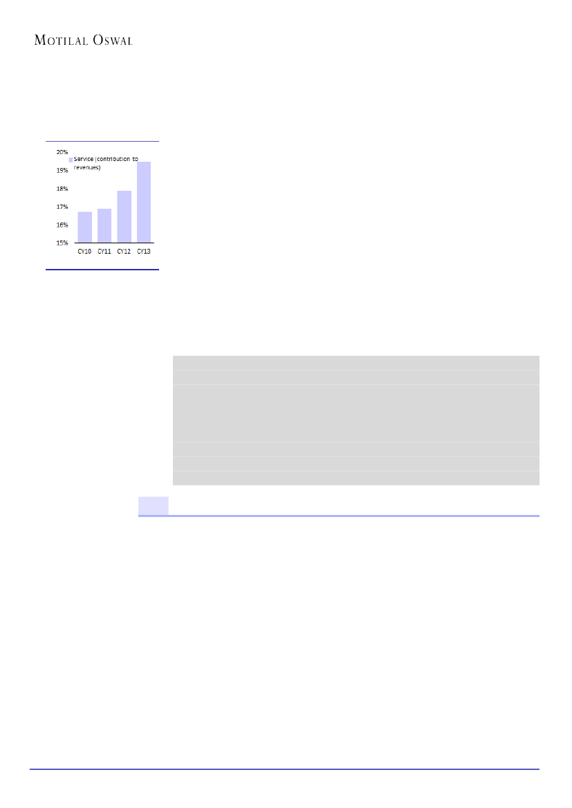 likely to increase to INR15b in 2015. Also, contribution of service business in