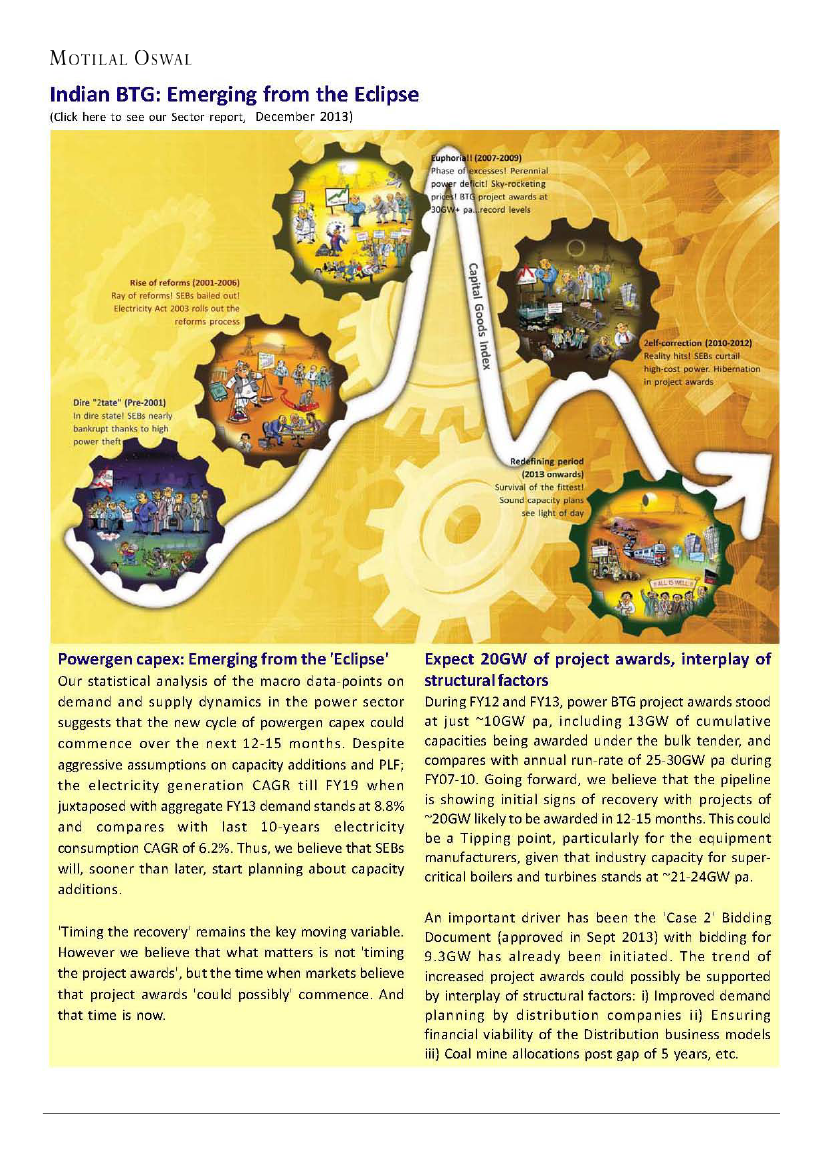 Karanpura (EPC, INR80b), ii) 1600MW NTPC Darlipalli (Boilers, INR30b), iii) hydro