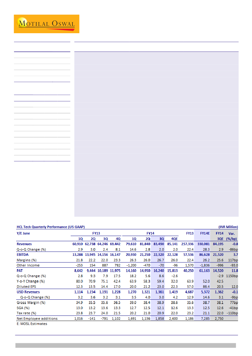 to surprise positively on efficiency gains. We expect HCLT to grow its USD revenue