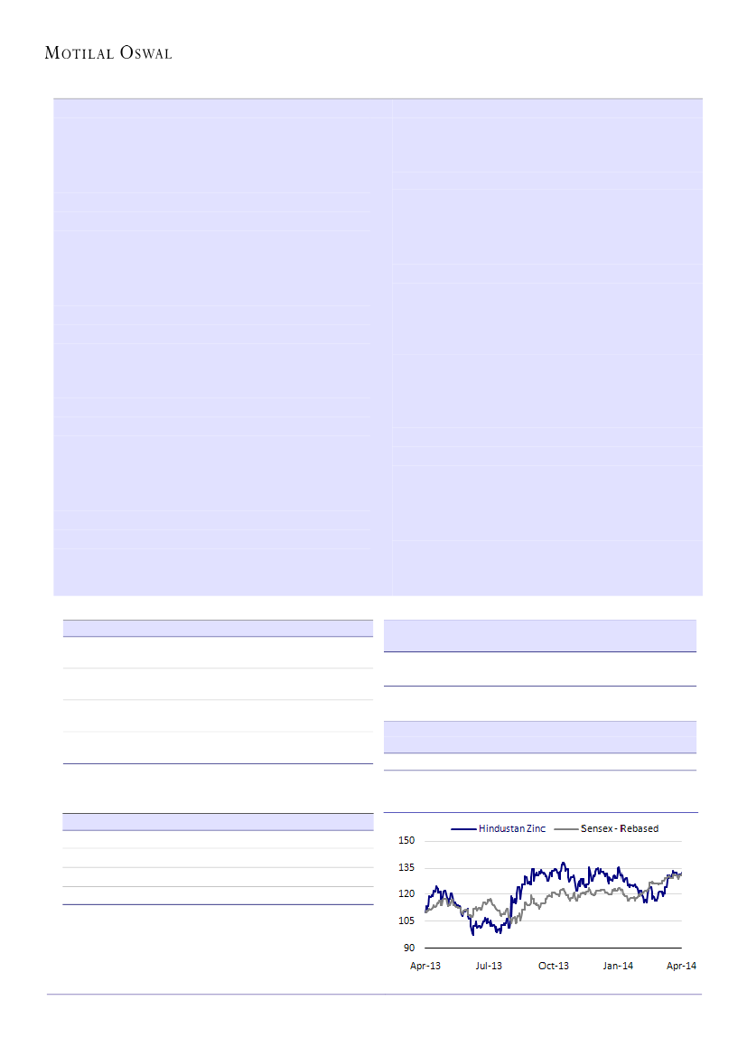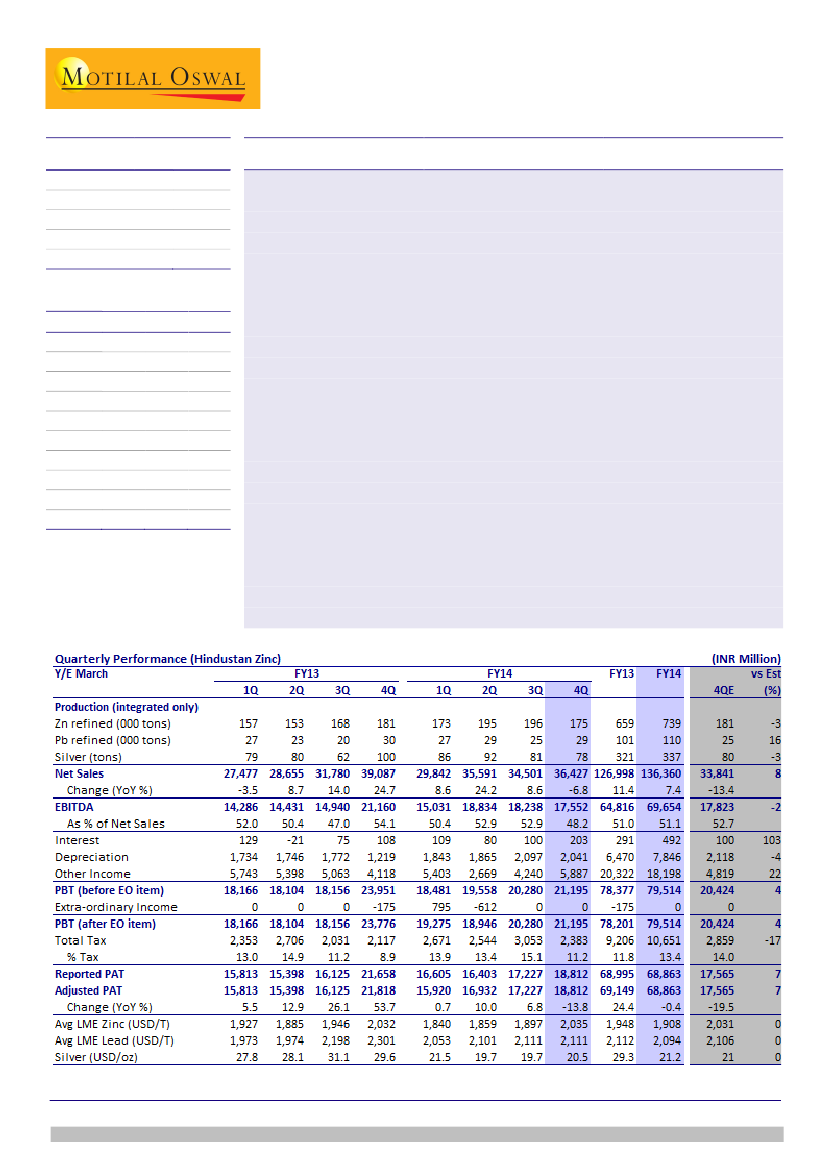 Hindustan Zinc (HZ) 4QFY14 adjusted PAT increased 9% QoQ to INR18.8b, above