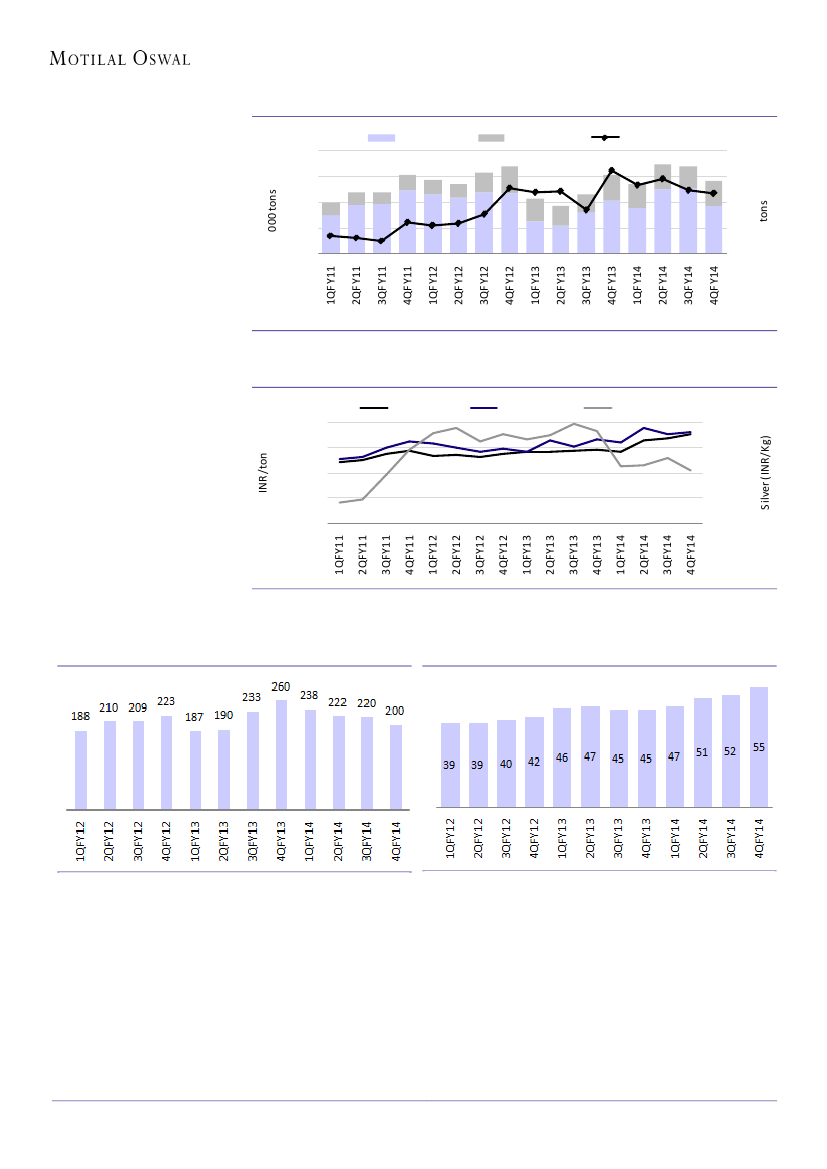 higher volumes. Stock trades at FY15E EV/EBITDA of 3.4x and P/BV of 1.3x. In view