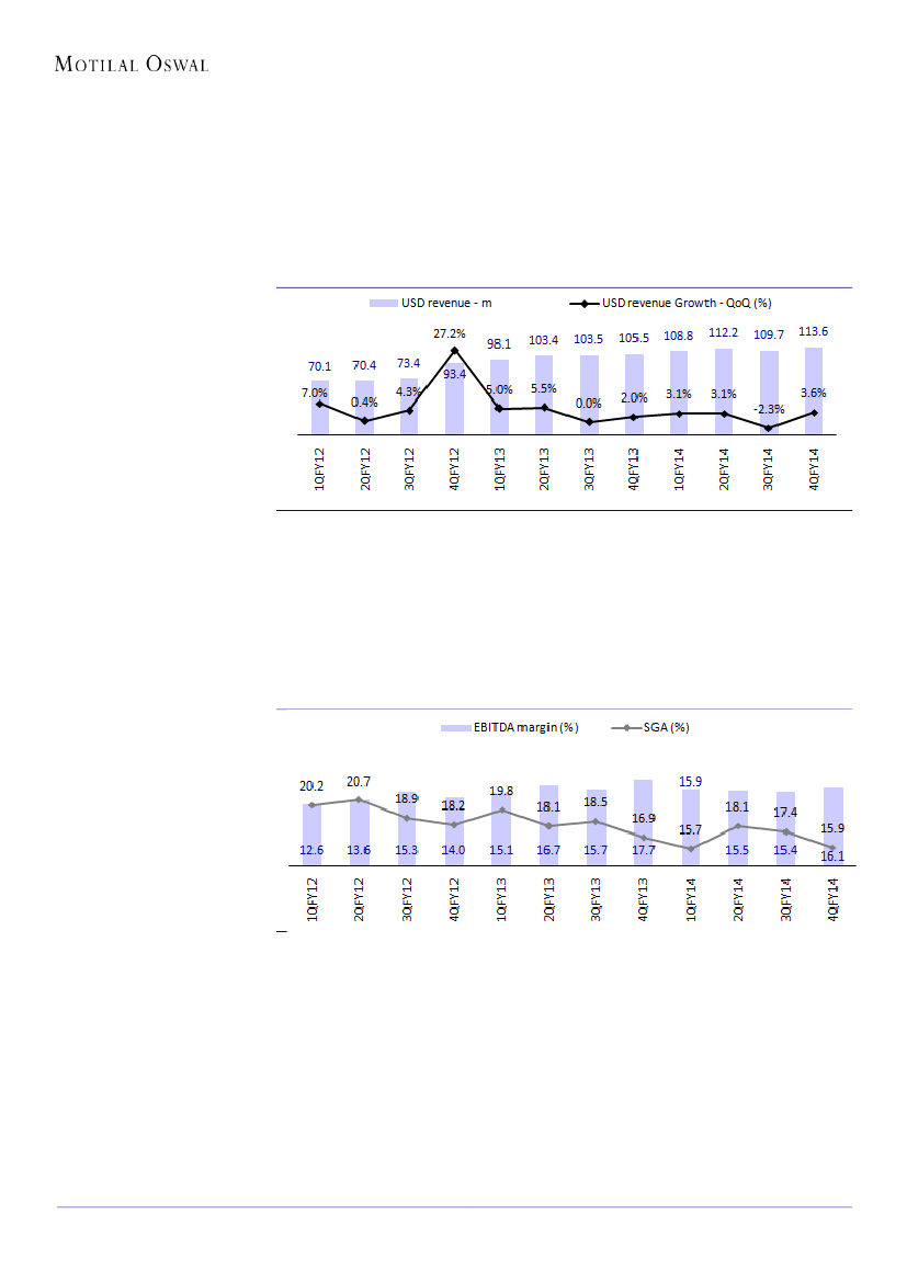 We expect the company to grow its USD revenues at a CAGR of 16% over FY14-