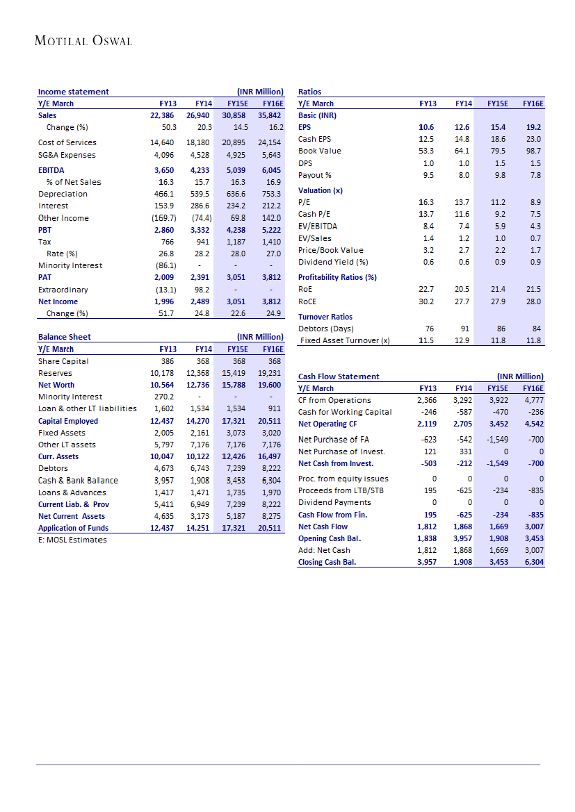 INR3.01b. Guidance implies EBITDA margin of ~17%, compared to 15.7% in FY14.