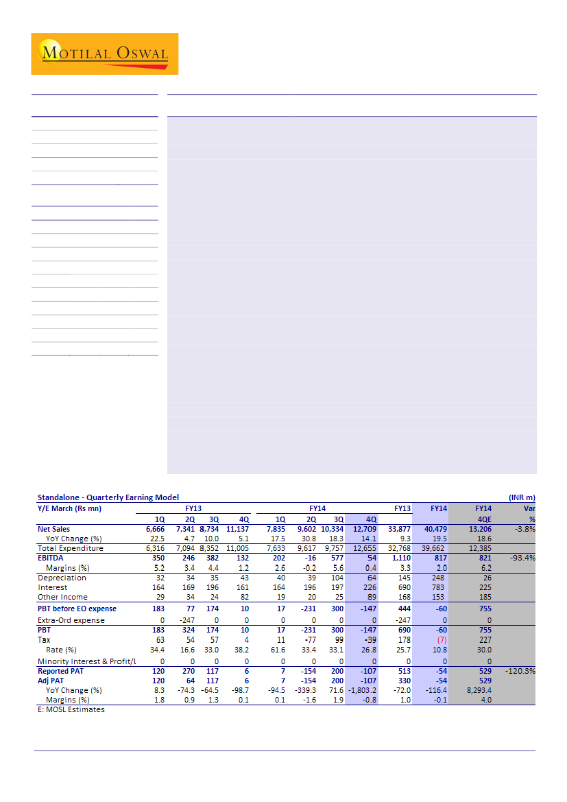 for 4QFY14 stood at 0.4% (est. 6.2%), against 1.2% in 4QFY13. While E&P posted a