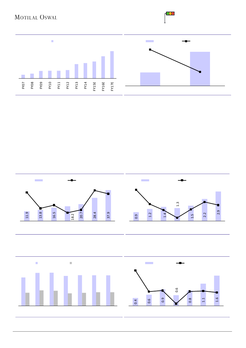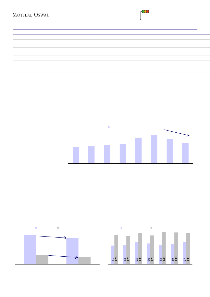 from 43% to 13% in two years, is likely to expand to 23% by FY17. We believe