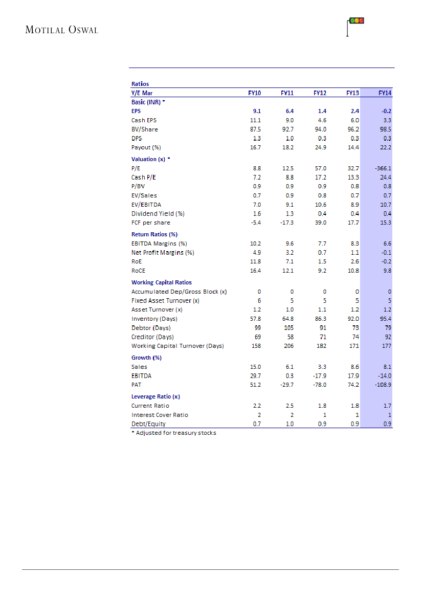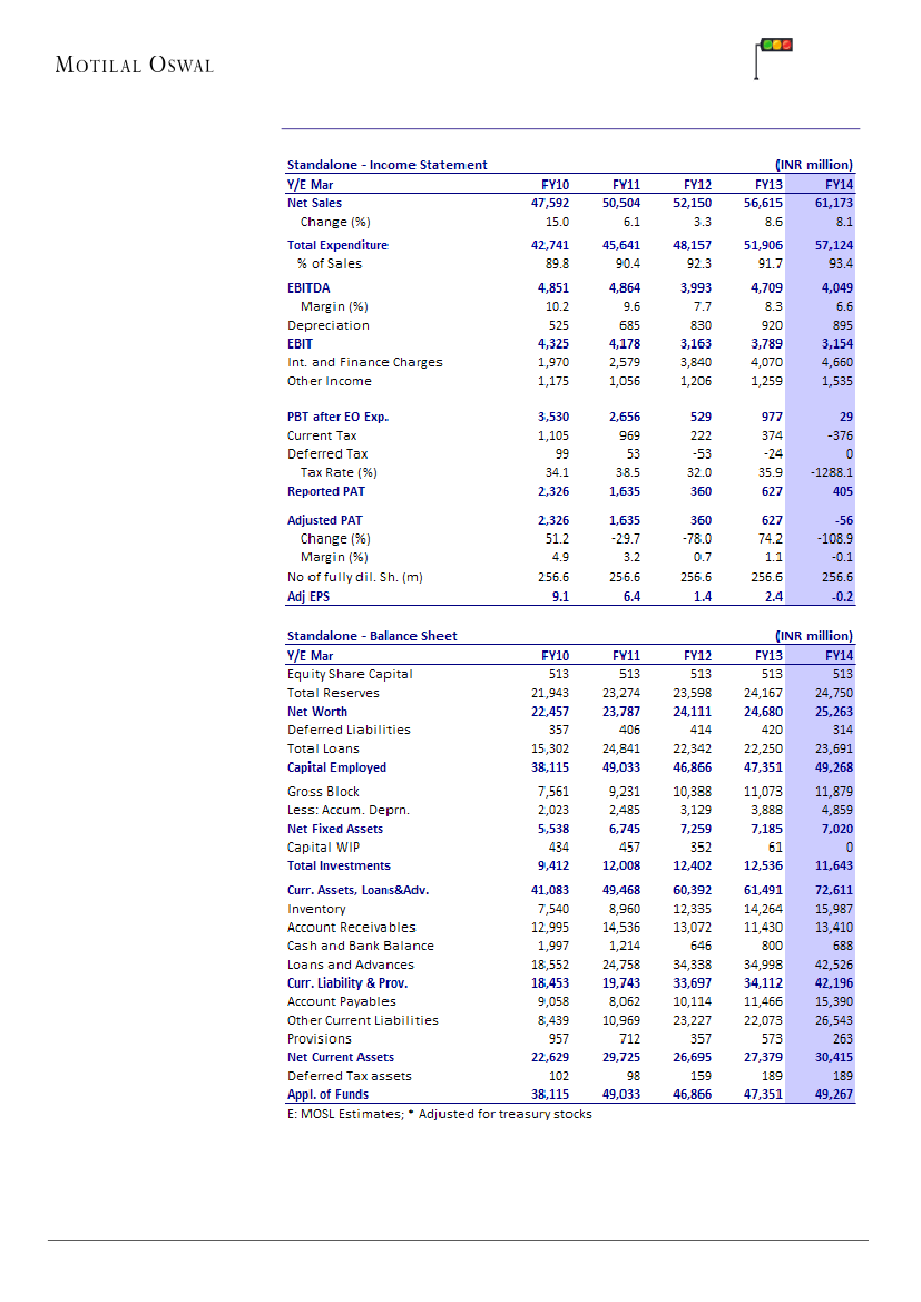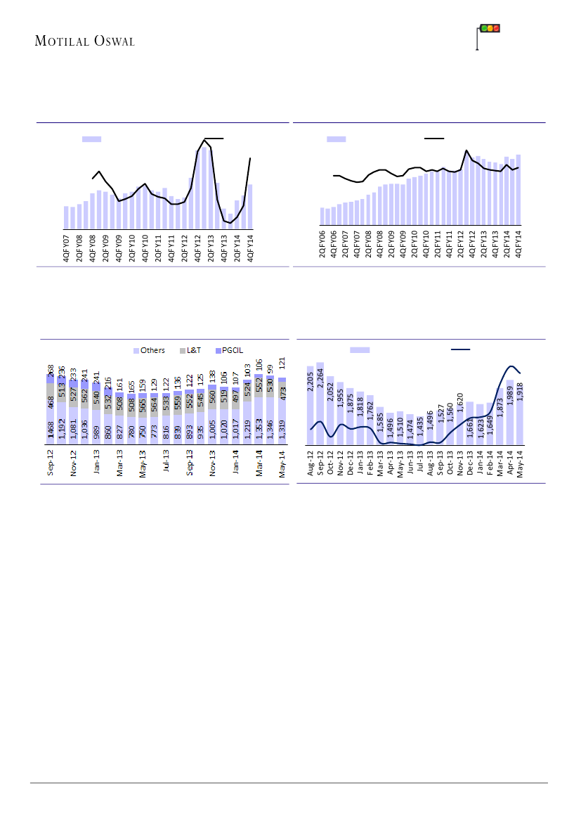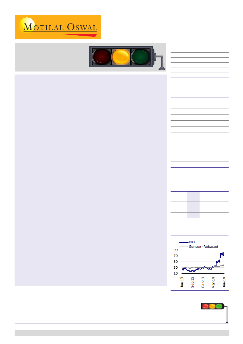 At the CMP, NJCC quotes at PER of 25.6x FY15E / 14.4x FY16E and P/BV of 0.7x.