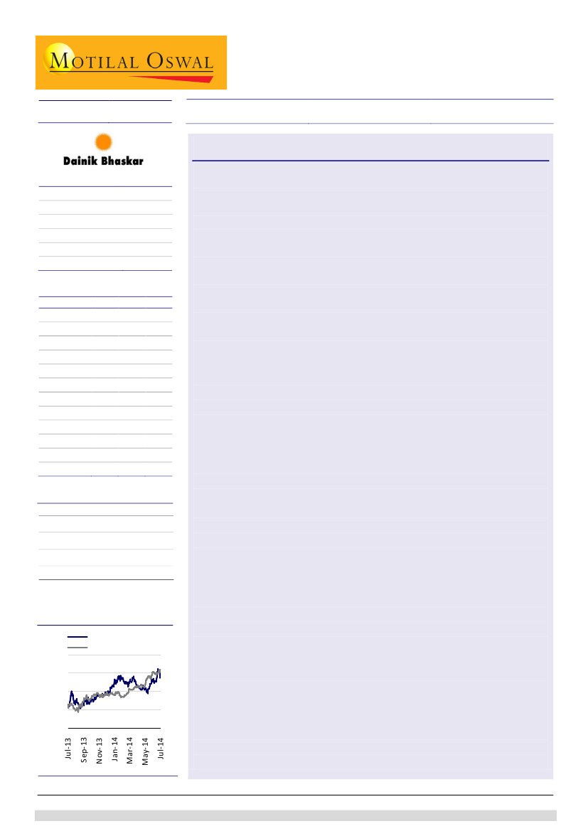 The stock trades at a P/E of 16.4x FY15E and 13.8x FY16E. DB Corp has
