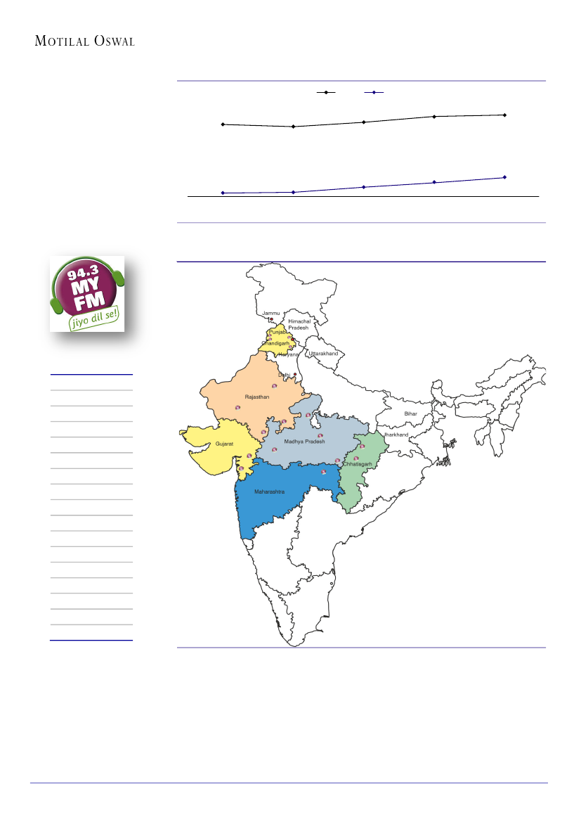 FY14 radio business revenue was INR0.8b with EBITDA margin of 40%. Radio