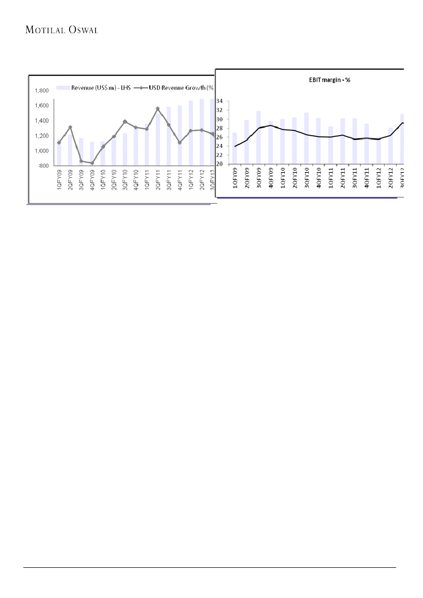 meeting 5% FY13 USD revenue growth guidance. We expect pricing concerns to