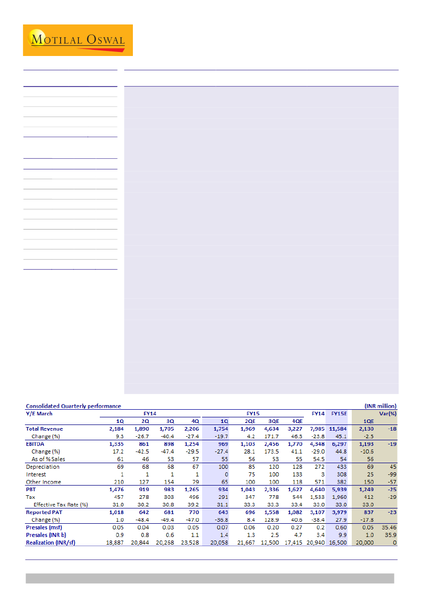 Presales was at 0.07msf (INR1.4b) v/s 0.05msf (INR1.1b) in