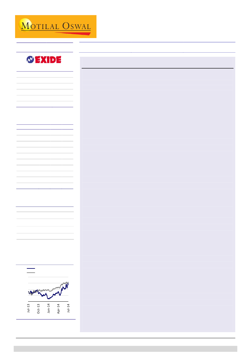 We upgraded Exide Industries’ (EXID) FY15E/16E EPS by 11.7%/27% during