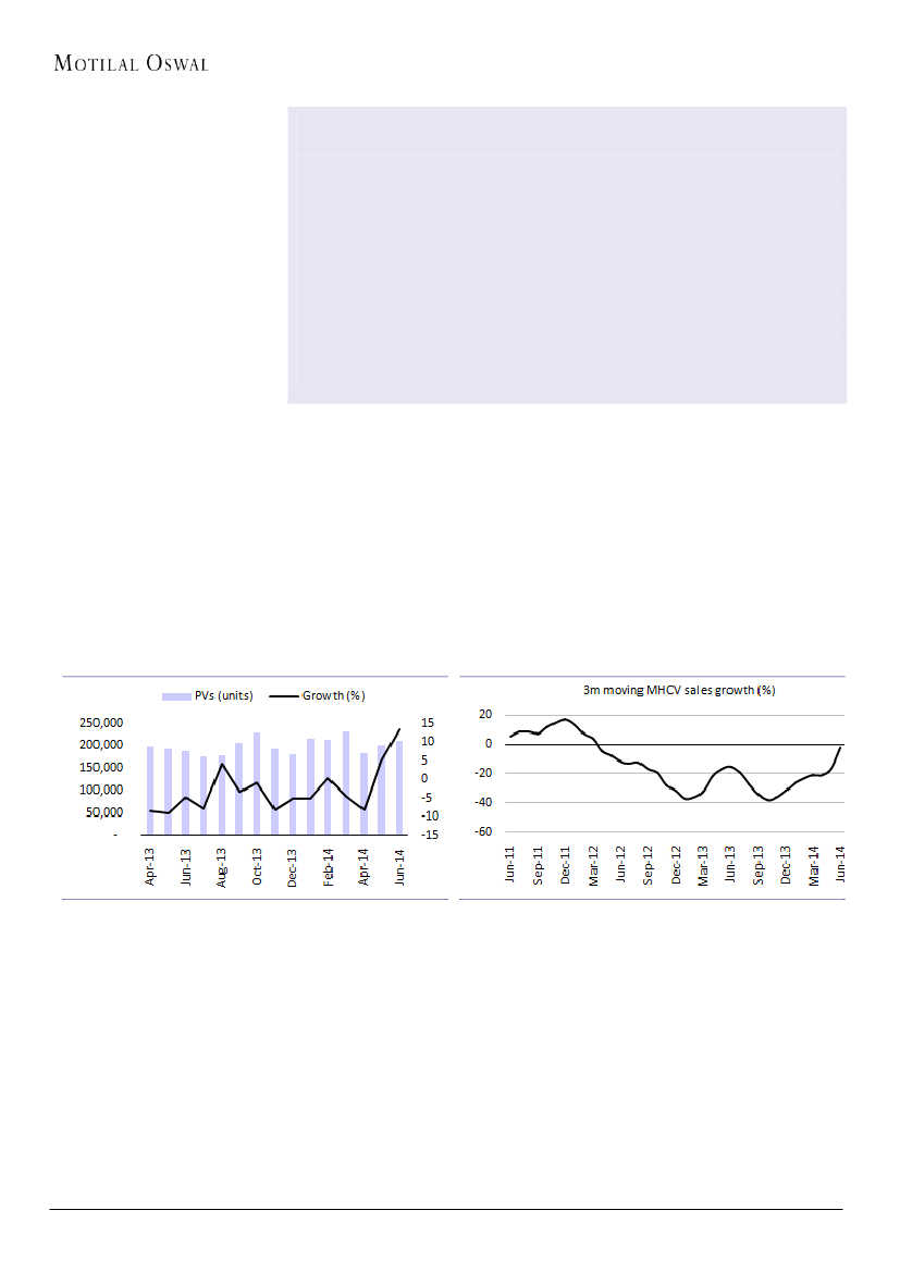 Initial signs of demand recovery are visible in autos, with a sharp pick-up in PV