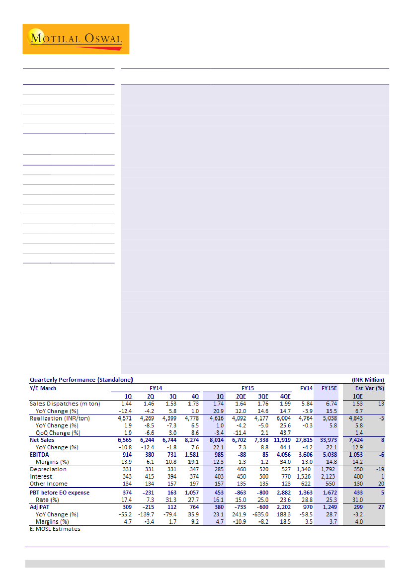 ~INR567/ton (v/s est. ~INR687) was impacted by lower realizations, weaker mix