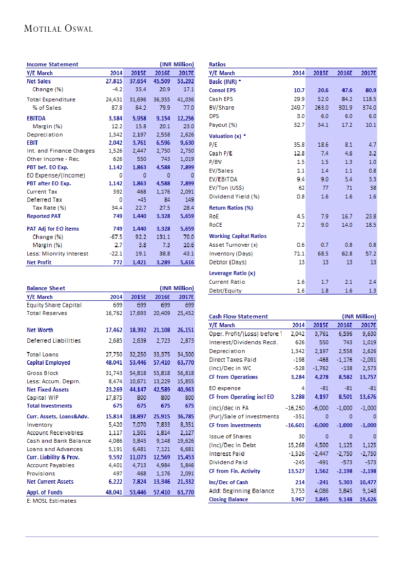 realizations, c) lower depreciation and d) lower tax. The stock trades at 8.1xFY16