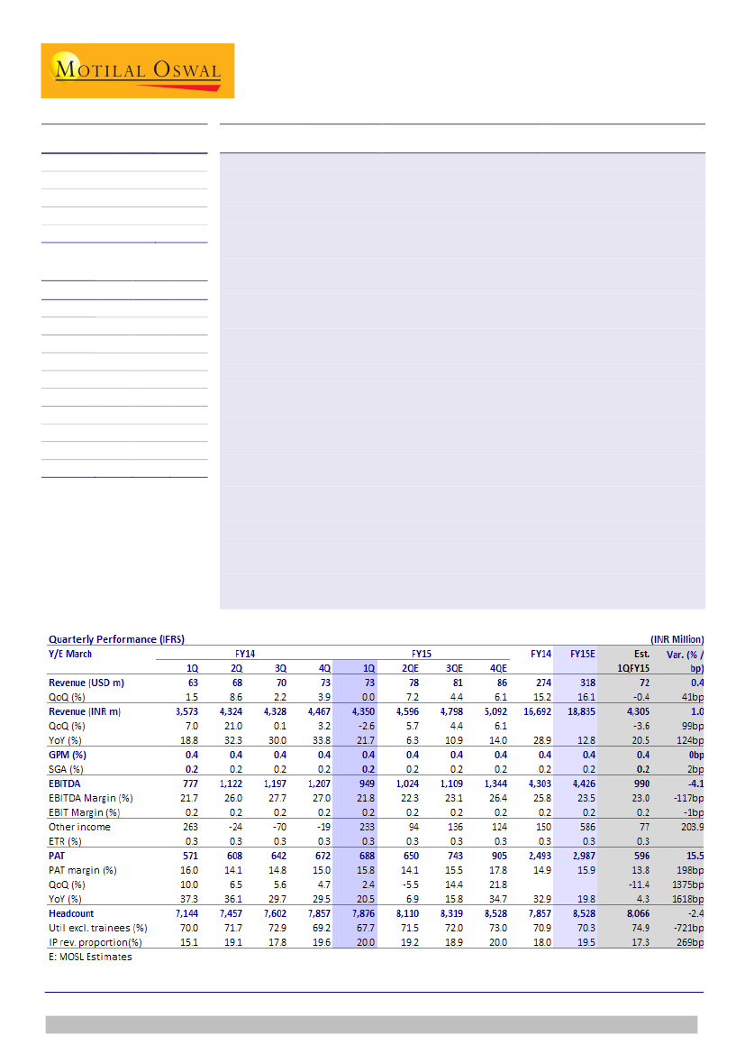 PSYS’ 1QFY15 revenue was USD72.7m, flat