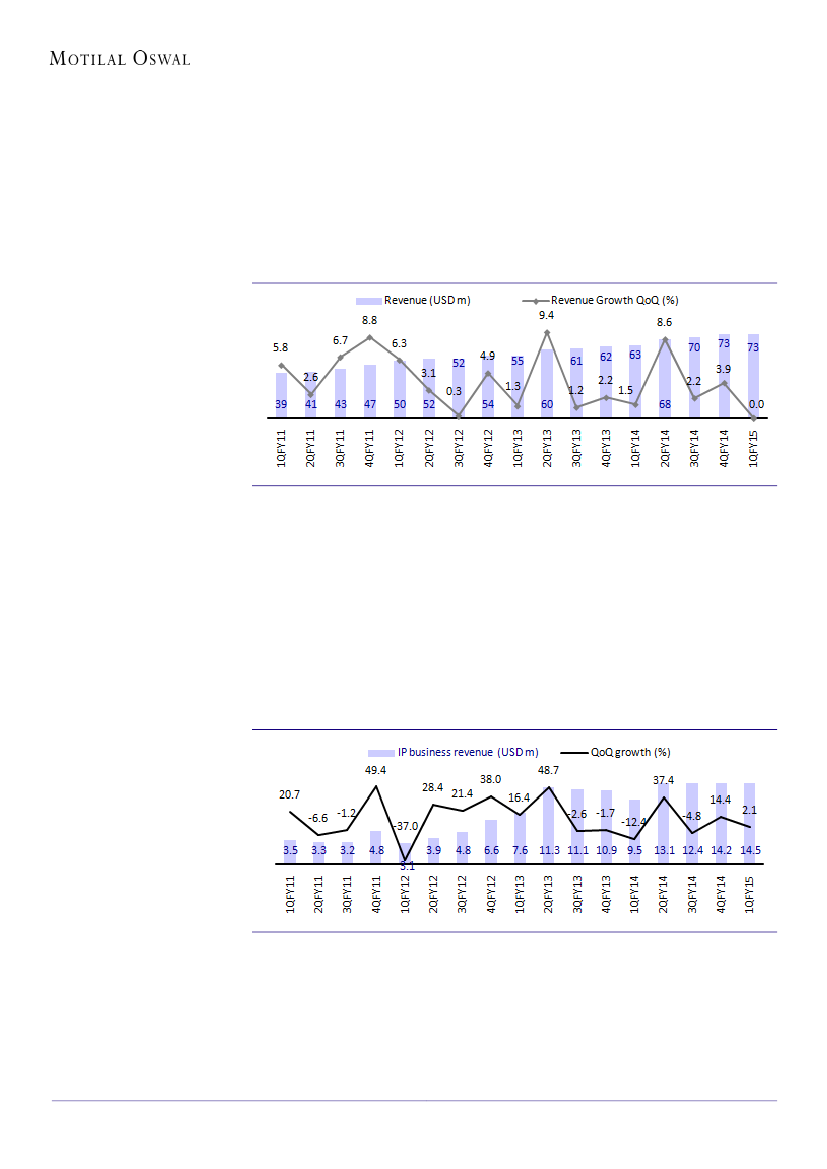 IP-led revenues grew 2% QoQ to USD14.5m, v/s our est. of USD12.5m (-12%