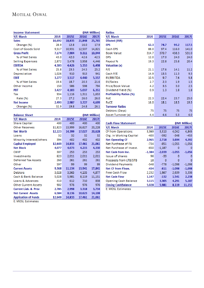 have revised our FY15 EBITDA margin downwards to 22.9%, 180bp lower,