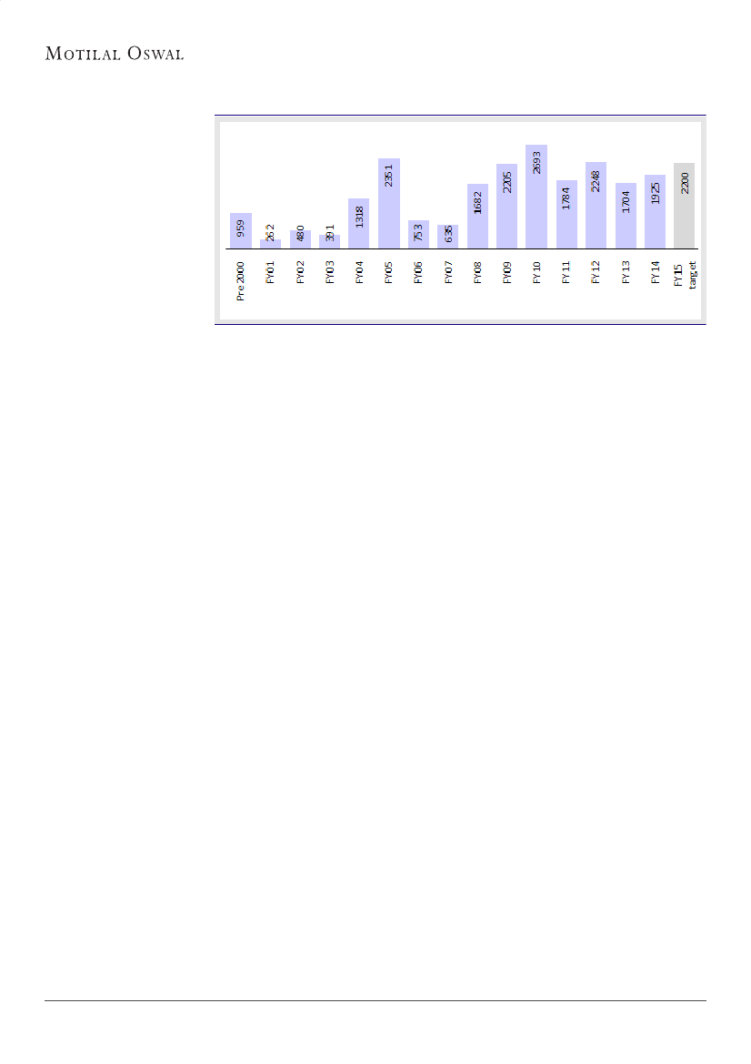 For FY15, NHAI's target completion is 2,000-2,200kms v/s 1,800kms in FY14. The road completion target in the