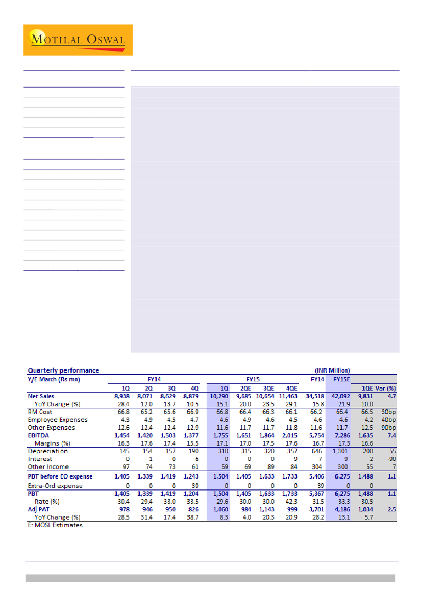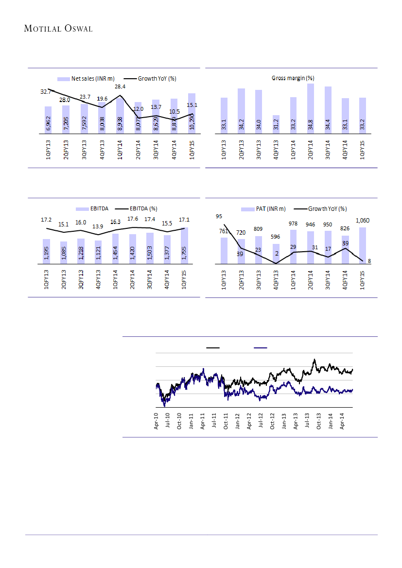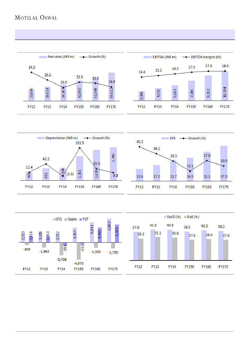 charge. The stock trades at 21.1x/16.6x FY15E/16E EPS of INR24.5/31.1 respectively.