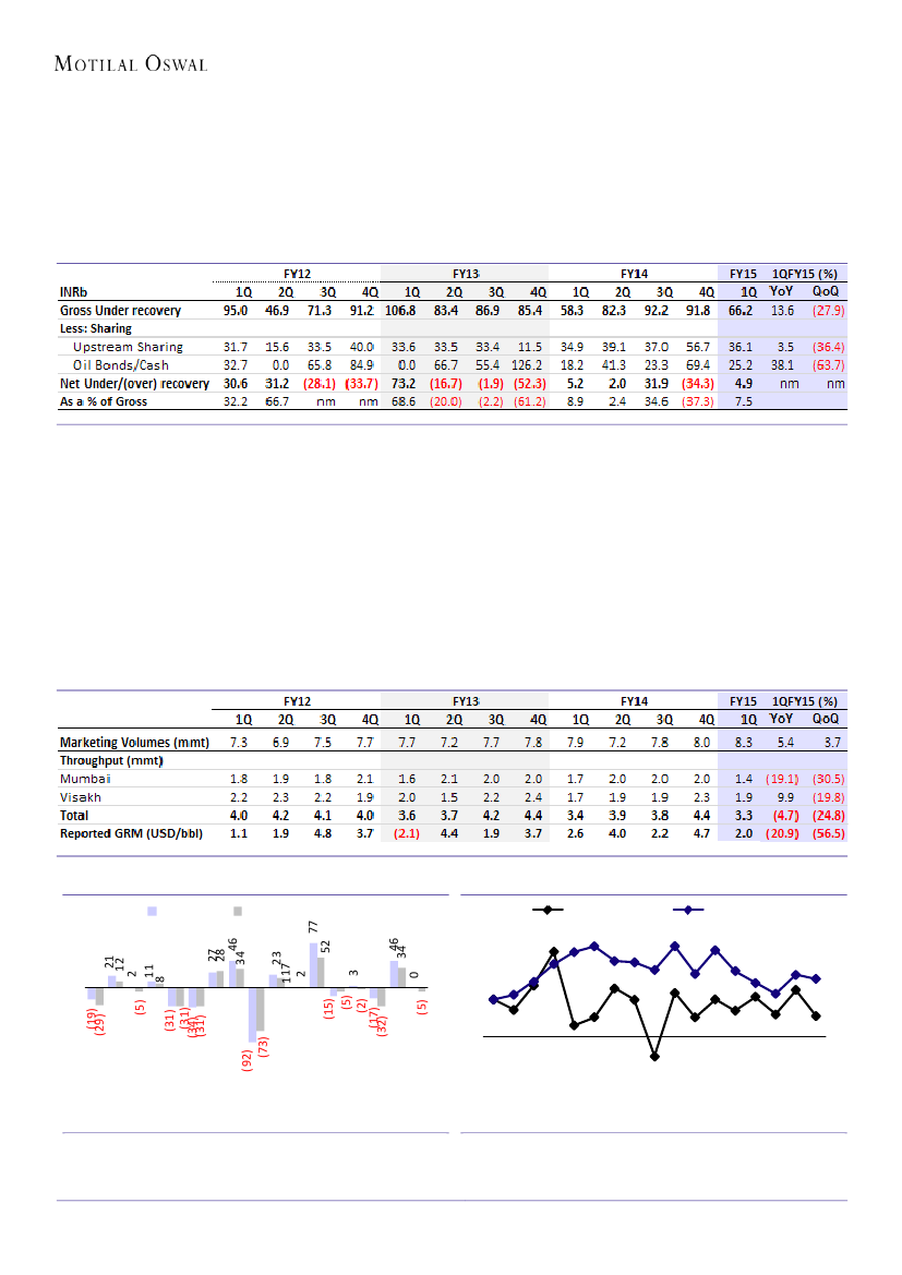 to net HPCL’s share of INR4.9b (7%). Similar to previous years, 1QFY15 subsidy
