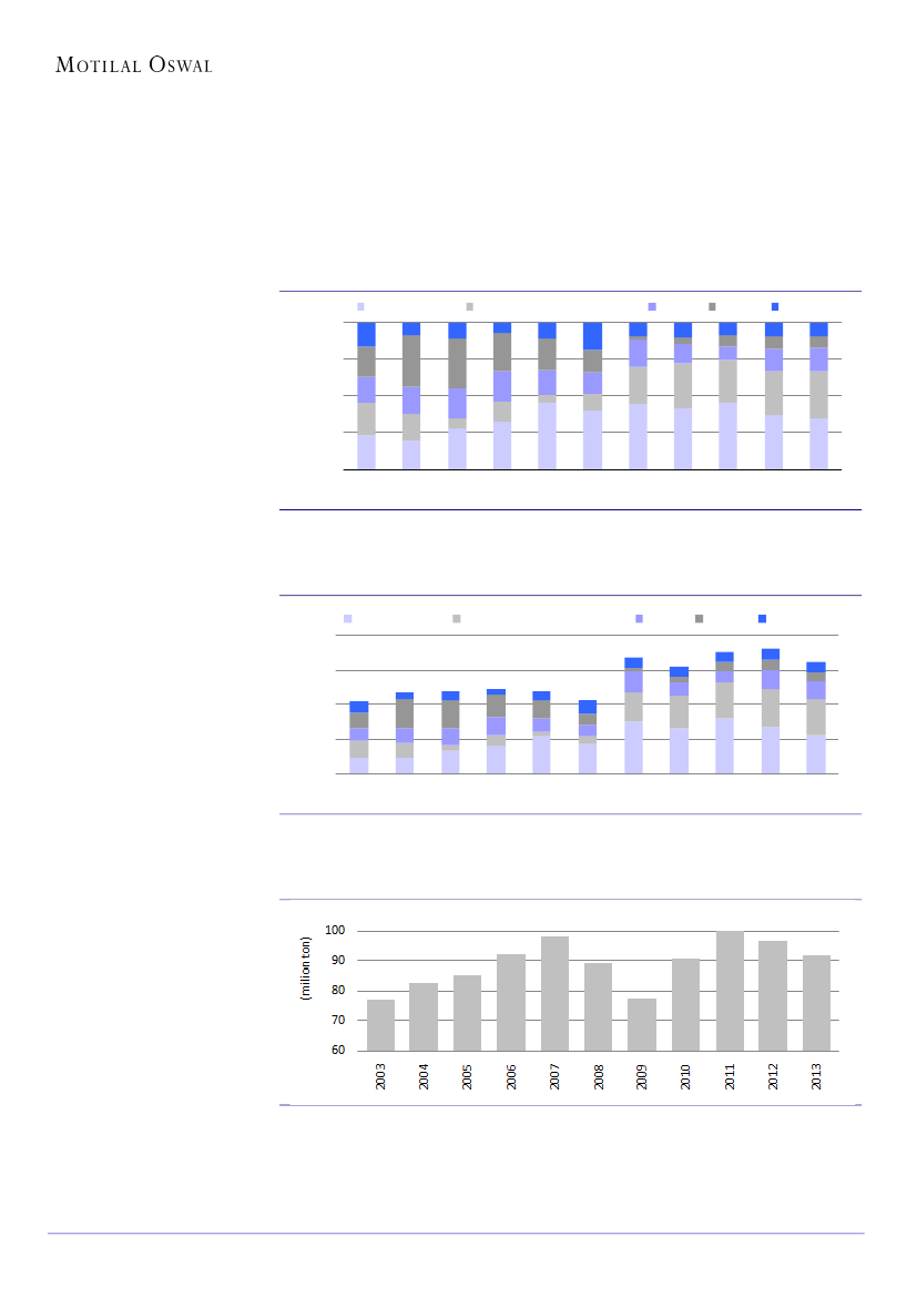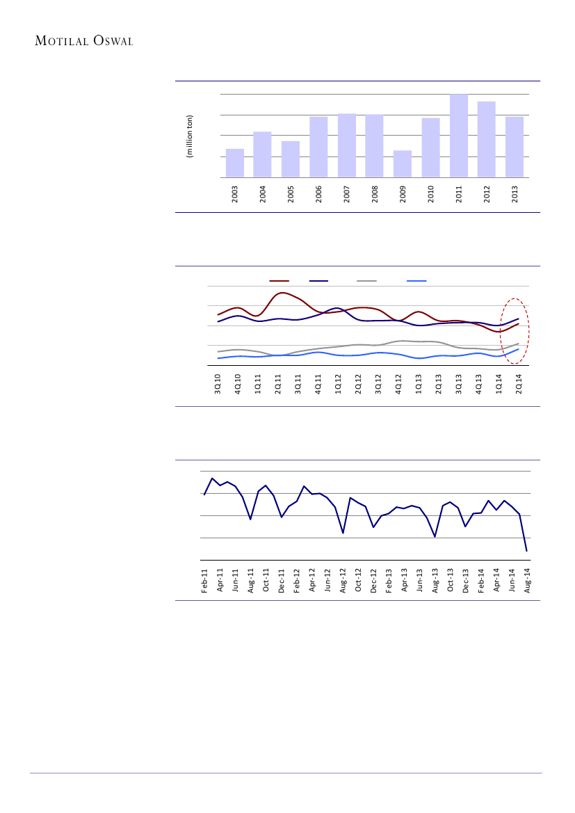 imports surged 30% during April-August 2014. Electric route steel production in