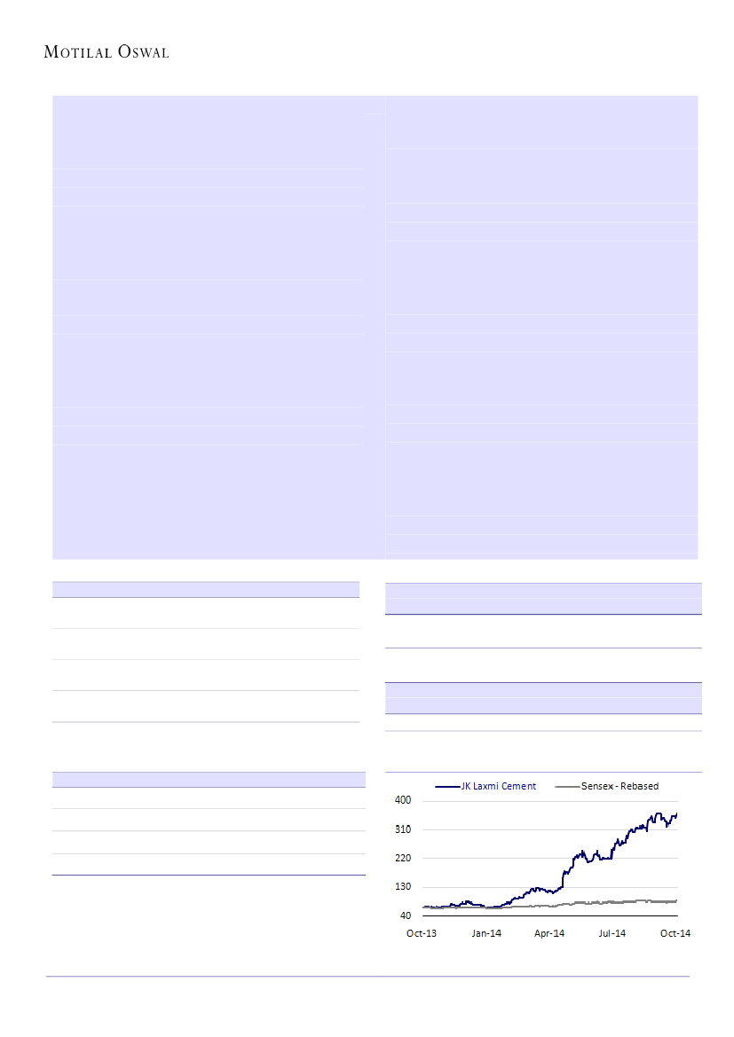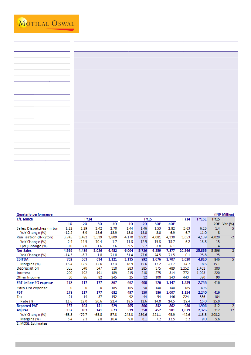 Cement’s (JKLC) 2QFY15 revenue grew by ~27.6% YoY to ~INR5.7b (v/s est.