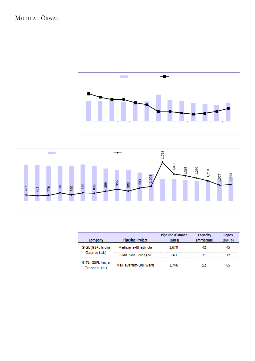and INR1,077/mscm in 1QFY15) and we model INR1,200 in 2HFY15. Average tariff