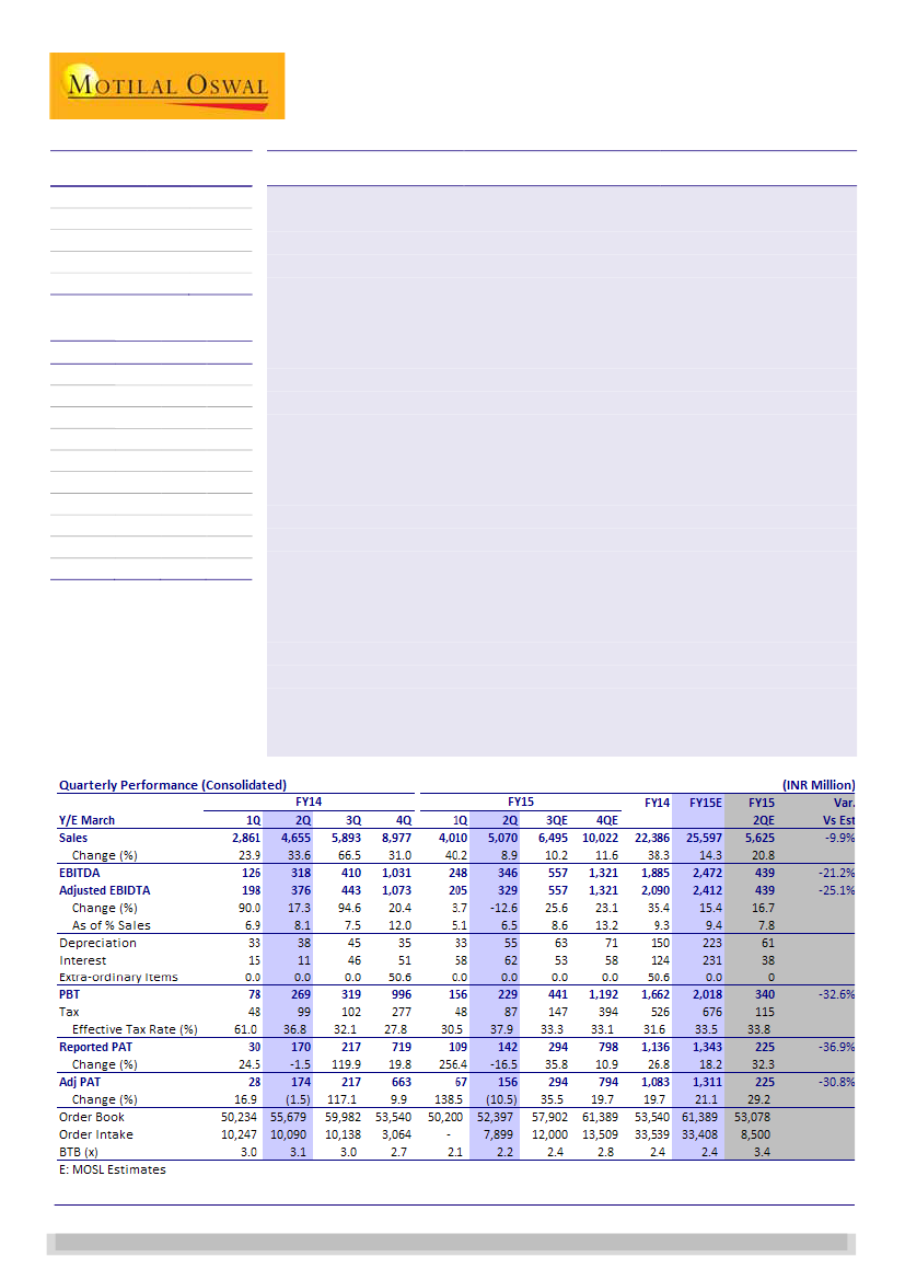 while subsidiary EBITDA declined 51% YoY in 2QFY15 at INR93m and was