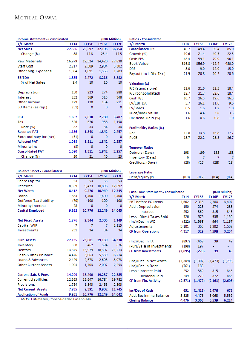 FY15 revenue guidance at INR26-27b v/s INR22.3b in FY14.