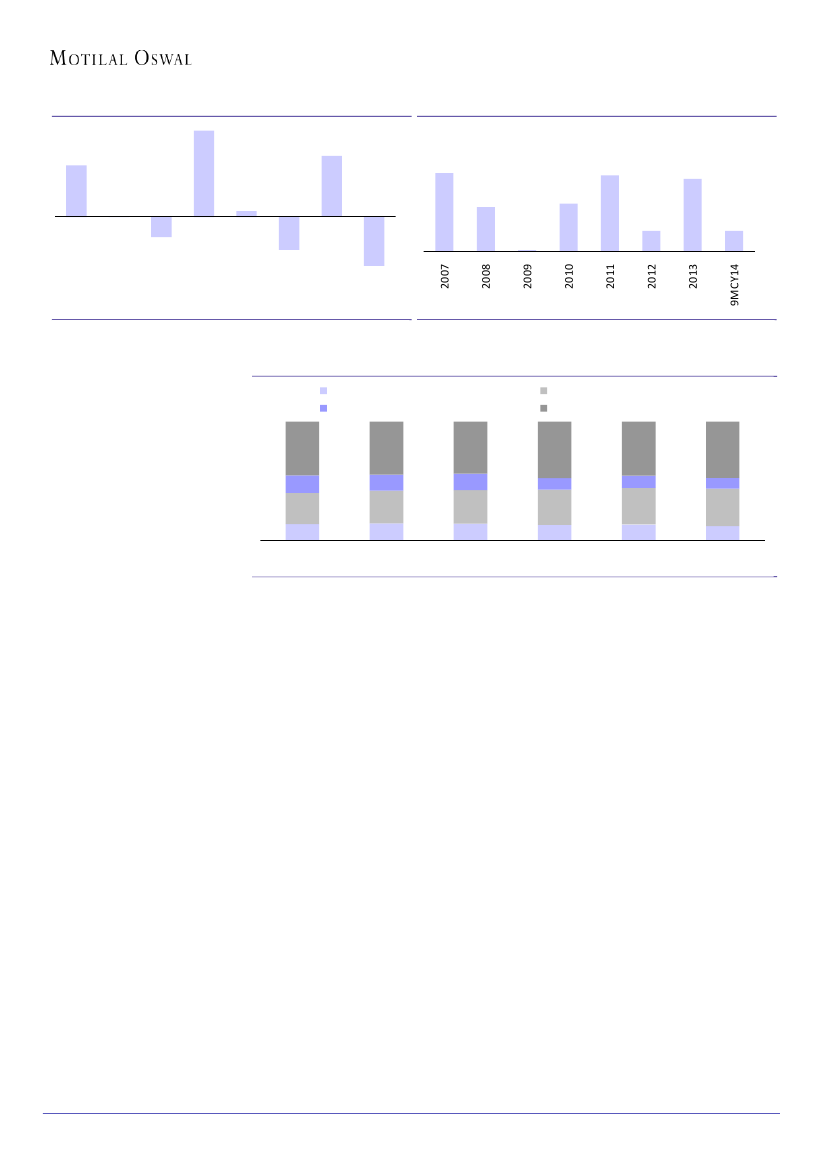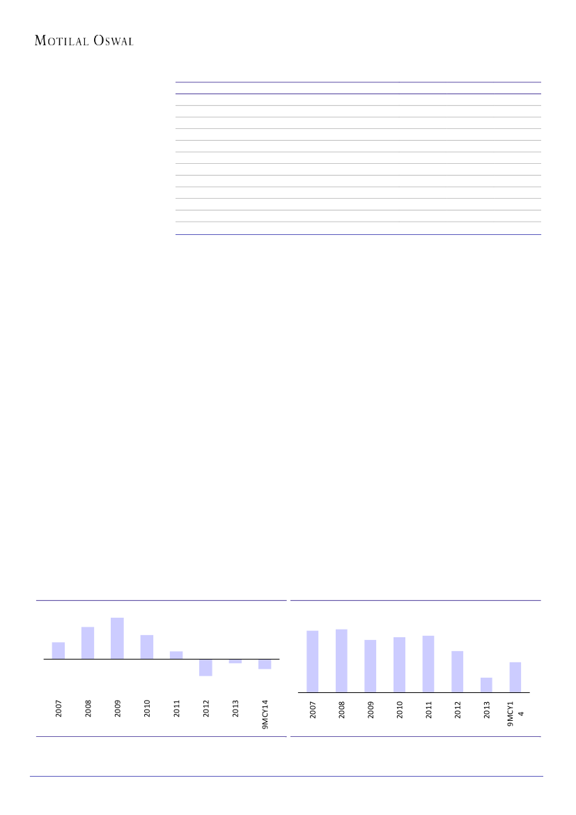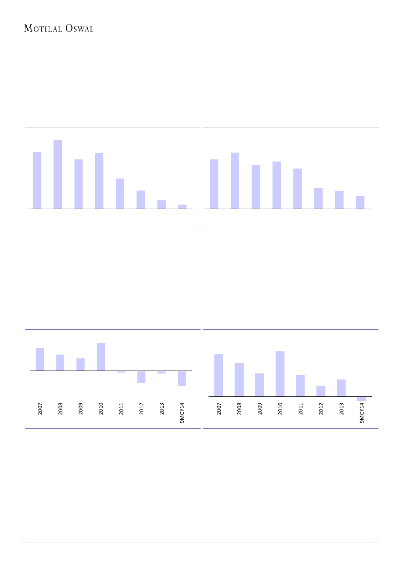 to remain tepid and have declined 1.6% in 9MCY14. Volume growth was