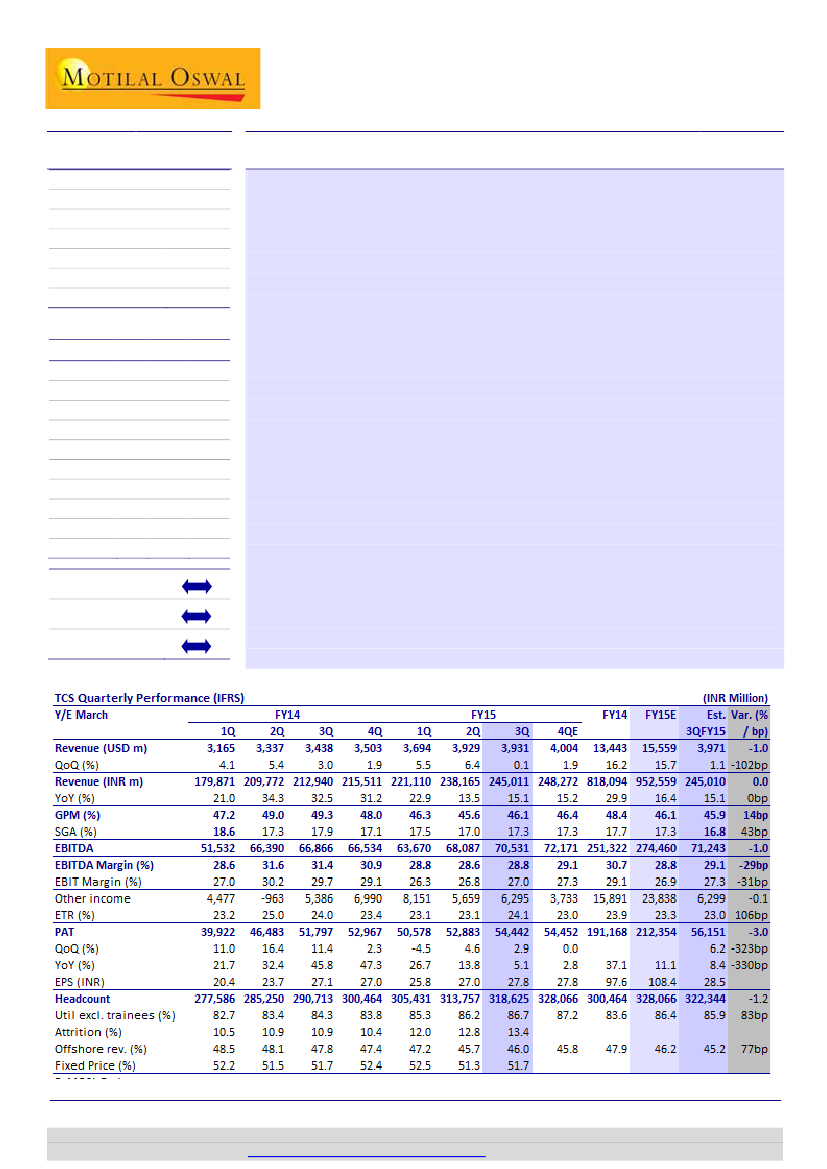 TCS and INFO contrasted in 3QFY15 – INFO’s CC realization declined 1.6% QoQ