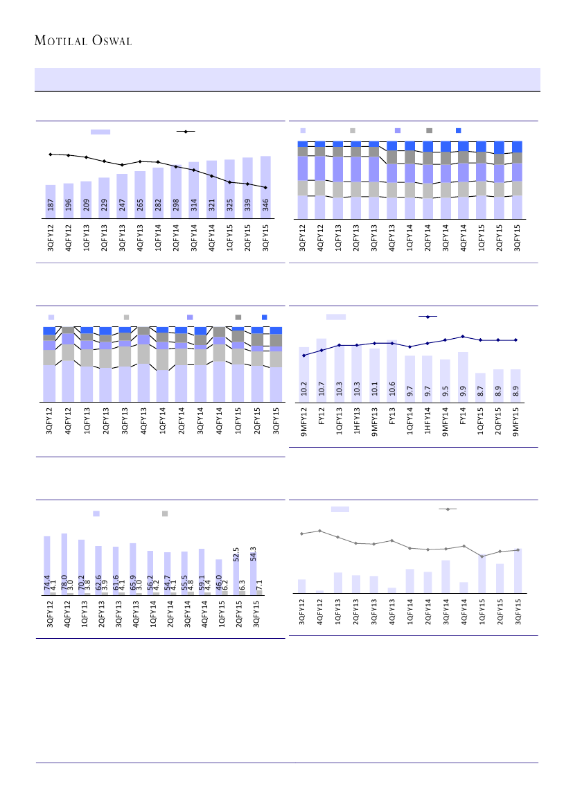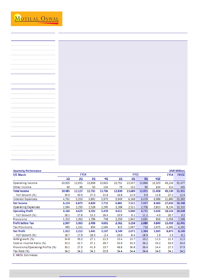 and 2.2% 3QFY14. Credit cost for the quarter stood at 3.15% - at a 5-year high.