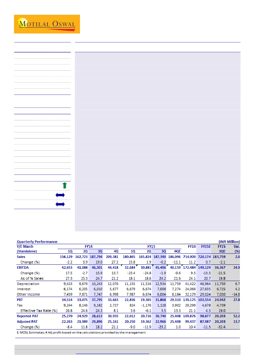 recovery (linked to availability) came down from 5 to 2 in 9MFY15. Recurring PAT