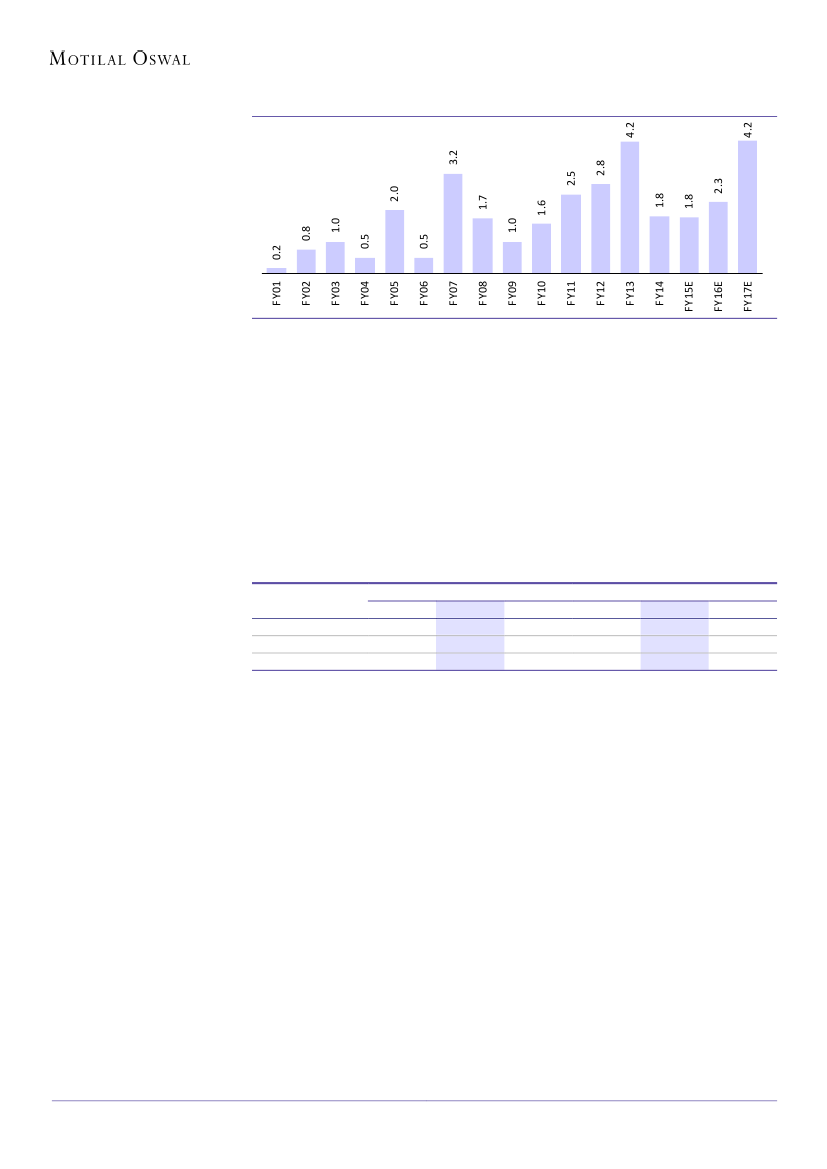 respectively. Capacity addition is near NIL, while FY15E addition target is 1.8GW.