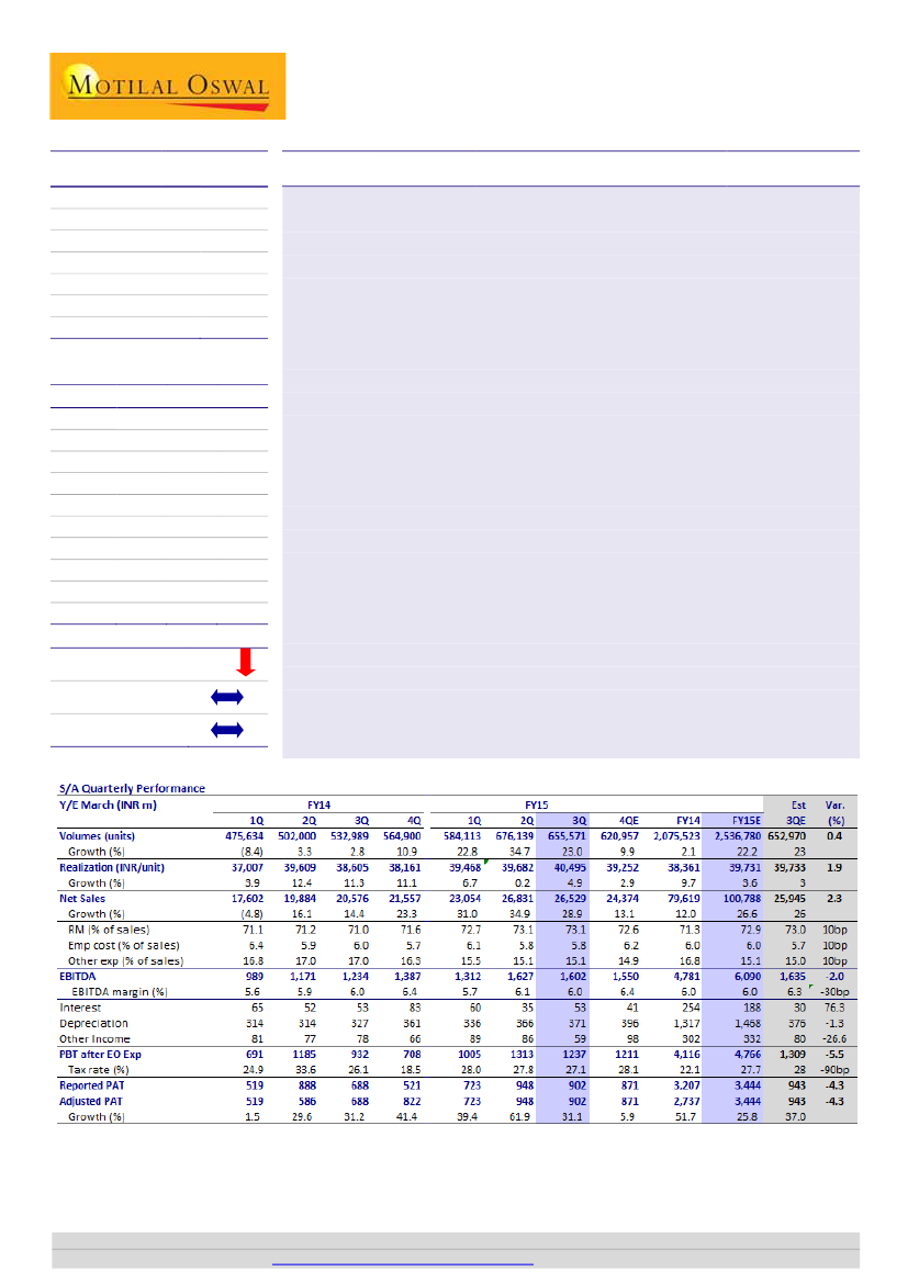 the excise duty hike, c) 3Q/ 9MFY15 EBITDA margin impacted by 55bp due to