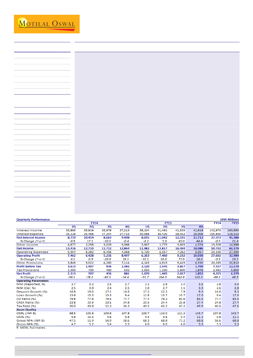 rising NPAs and further impacted in 1QFY15 due to a spike in Agriculture NPAs.