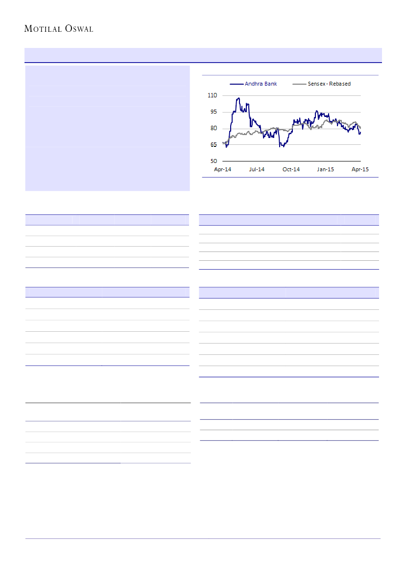 Andhra Bank’s (ANDB) 4QFY15 PAT was at INR1.9b (2x YoY on a lower base),