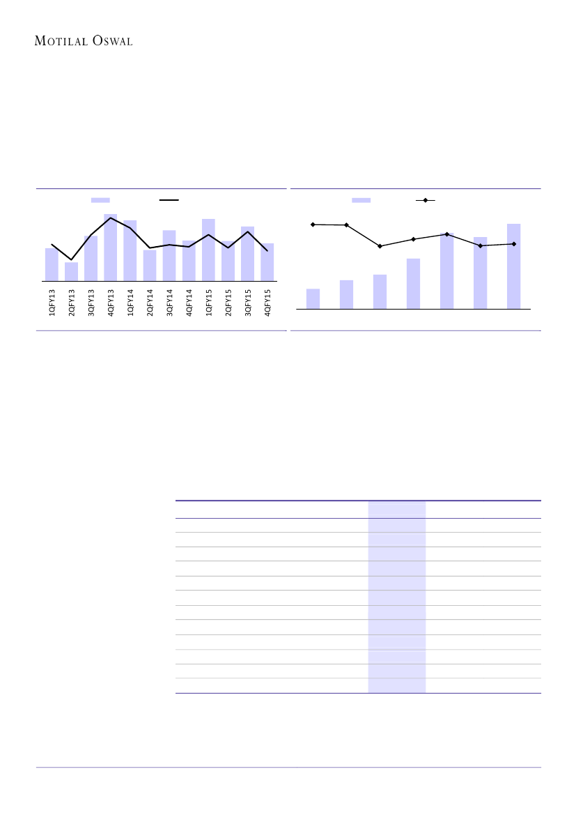 4QFY15 (est.INR464m). EBITDA margins declined 40bps to 8.0% in 4QFY15 (est 9%) led
