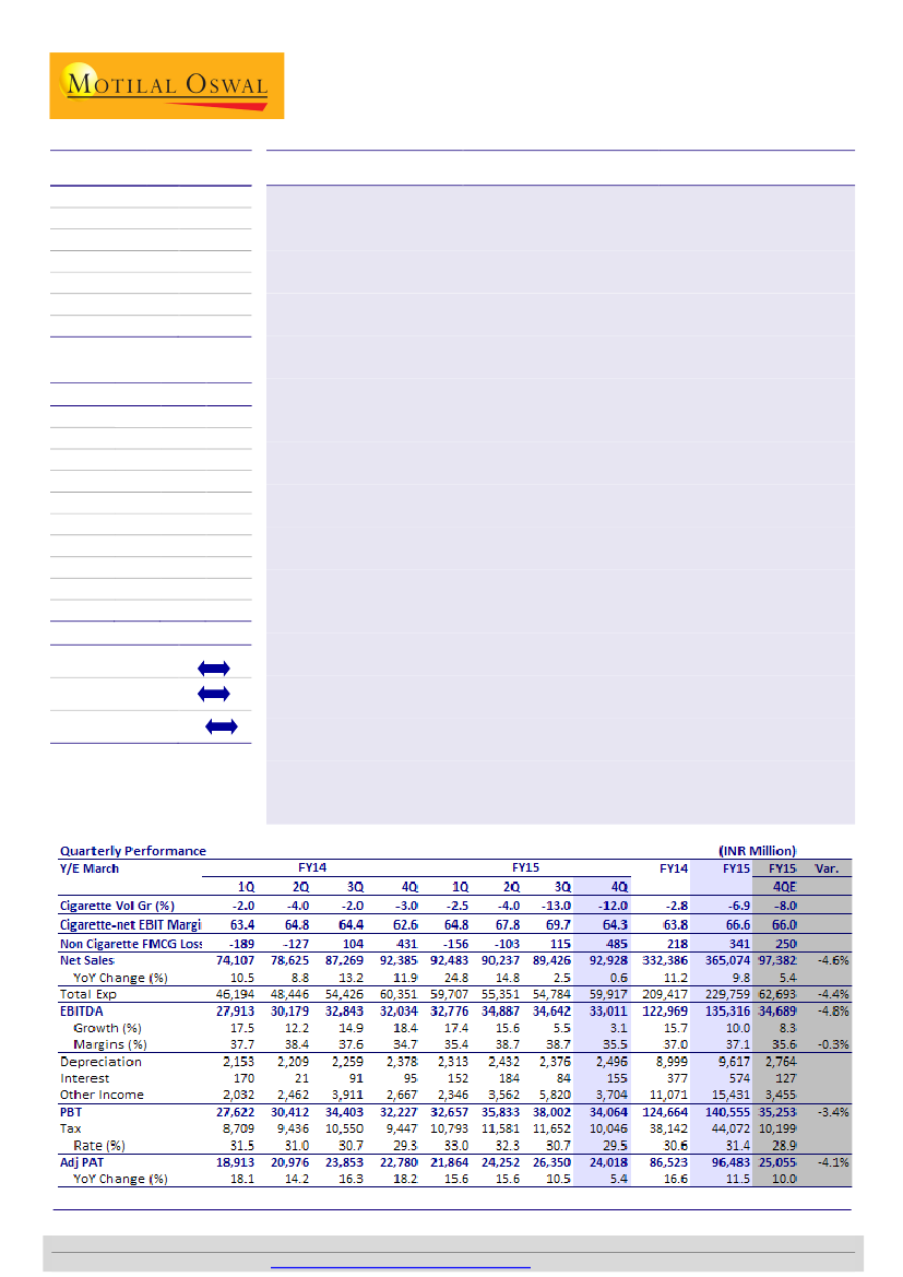 volume decline in FY16E. We expect the Cig volumes to remain under pressure for