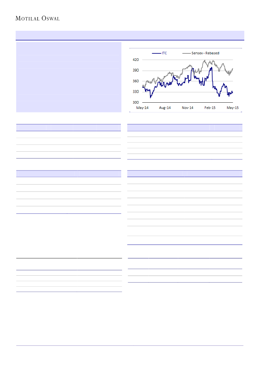 21.5x FY17E EPS, ITC trades at a discount of ~35% to the sector average. However