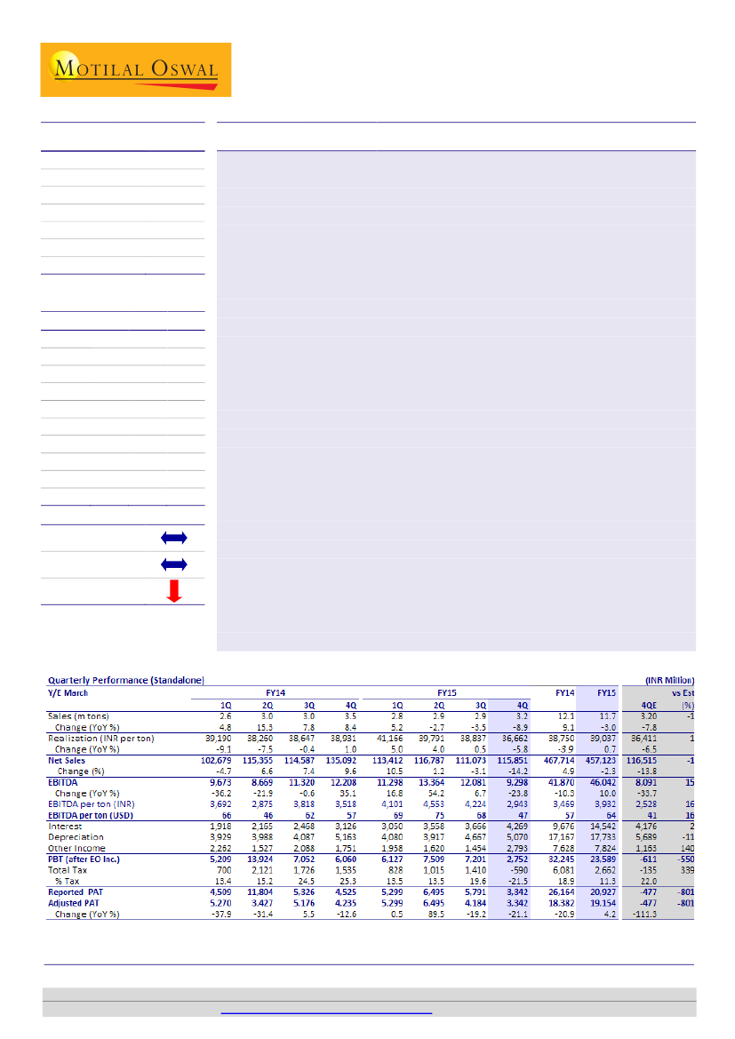 leverage, we expect EBITDA/t to improve to ~INR4,260/ton by FY17E. SAIL did not