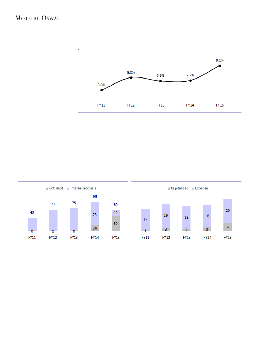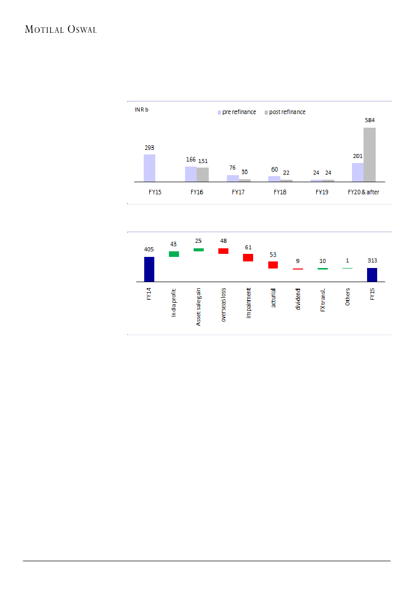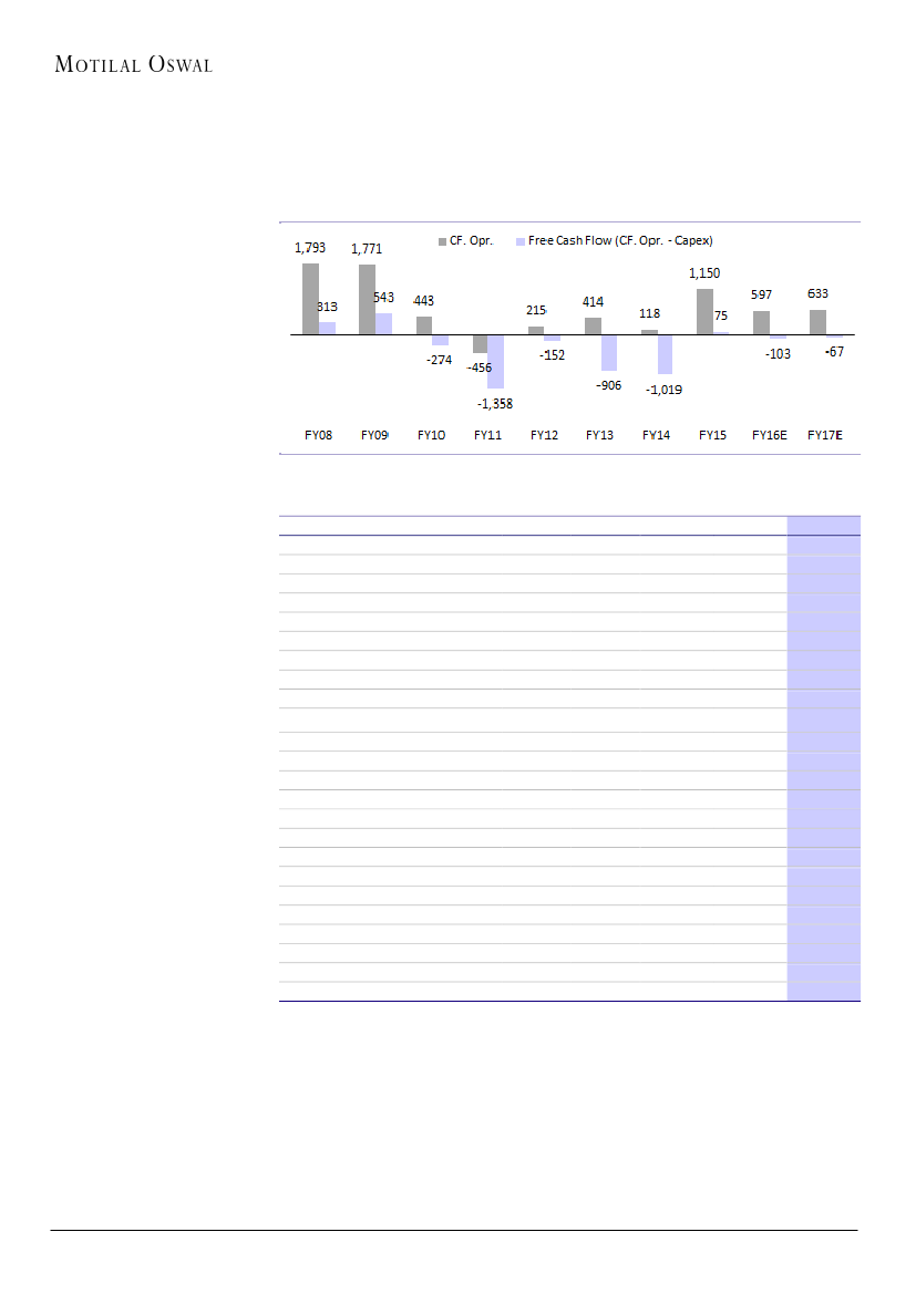 debt. We are raising the finance cost materially (+17% to INR55b for FY17E).