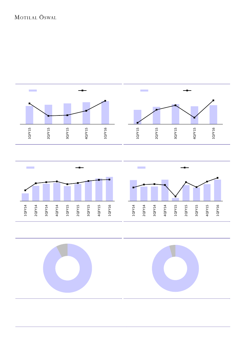 compared to 19.8% in 1QFY15, an expansion of 320bp YoY. Consequently, PAT grew