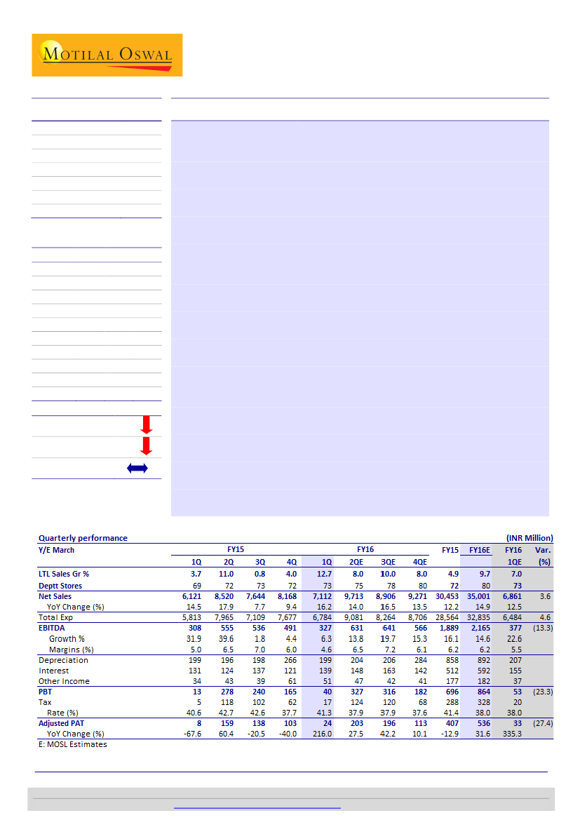 EBITDA up 22% to INR95m. HyperCITY posted a loss of INR159m (10% YoY and