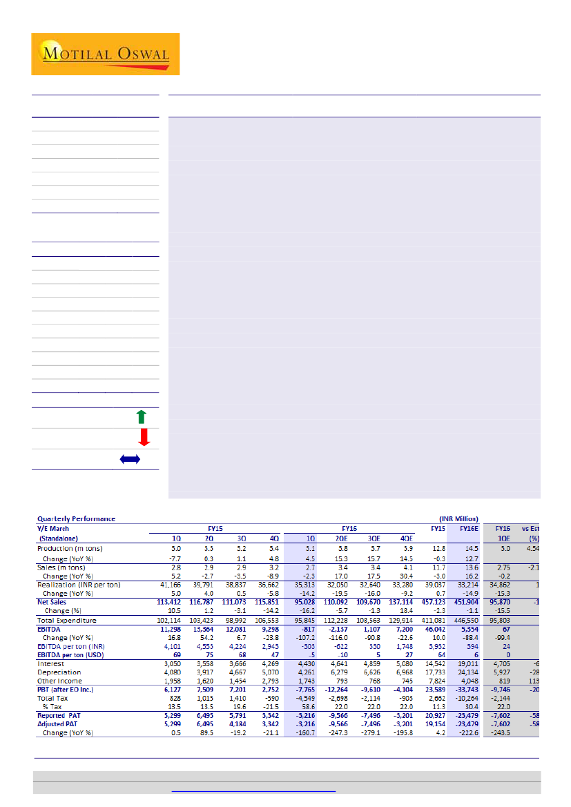 SAIL reported EBITDA loss of INR817m (est. INR67m) under pricing pressure and poor